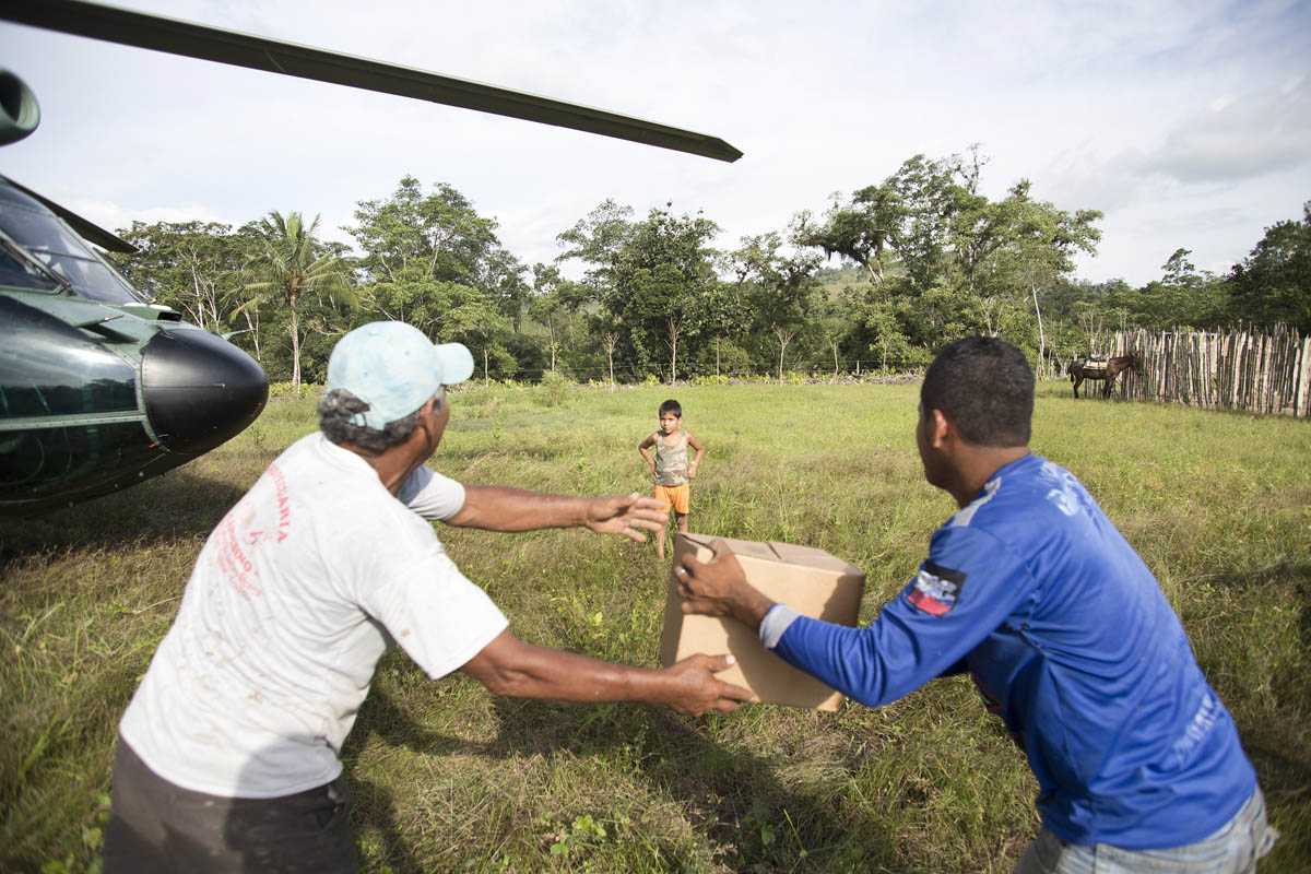 Un pequeño manabita corre para recibir un kit de ayuda humanitaria que ha llegado por fin a su zona. Foto: Edú León.