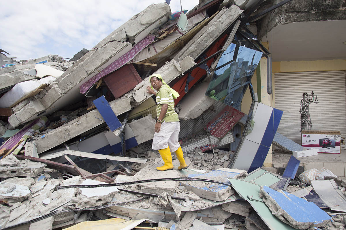 Es el tercer día después del terremoto de Pedernales. Los afectados intentan reconstruir sus vidas y los servidcios de rescate intentan recuperar supervivientes. Foto: Edú León.