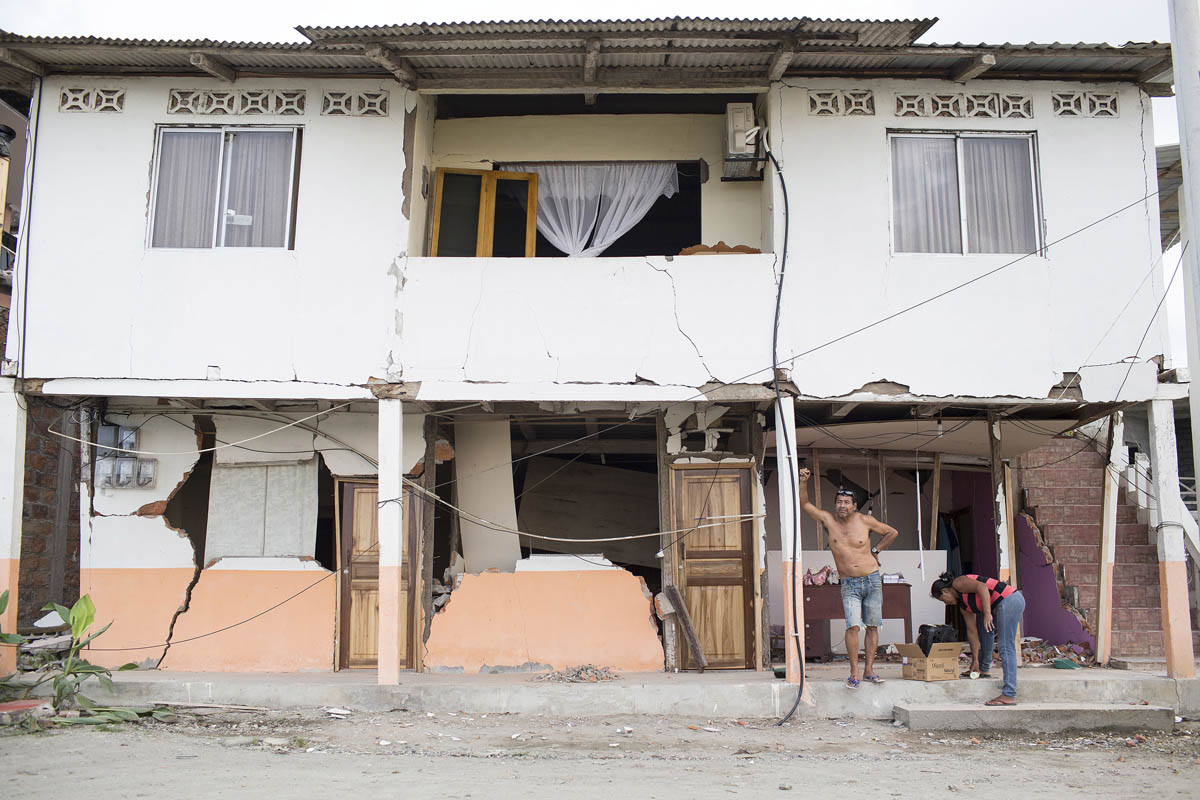 Las escenas que Edú León recoge en esta serie son una muestra del carácter de un pueblo que se aferra a la vida. El trabajo, el asombro, la irreverencia, el vértigo, el sentido de la justicia o el plácido sueño en medio del absurdo definen a este conjunto de fotografías un mes después de la tragedia. Además, estas imágenes son el reflejo de ese toque surreal que caracteriza al costeño ecuatoriano y al manabita, en particular: la religiosidad y su vínculo directo con el mito, con el humor y con los símbolos. Con esta serie rendimos homenaje a la memoria: recordamos el dolor para evitarlo en adelante y para celebrar cada comienzo nuevo.