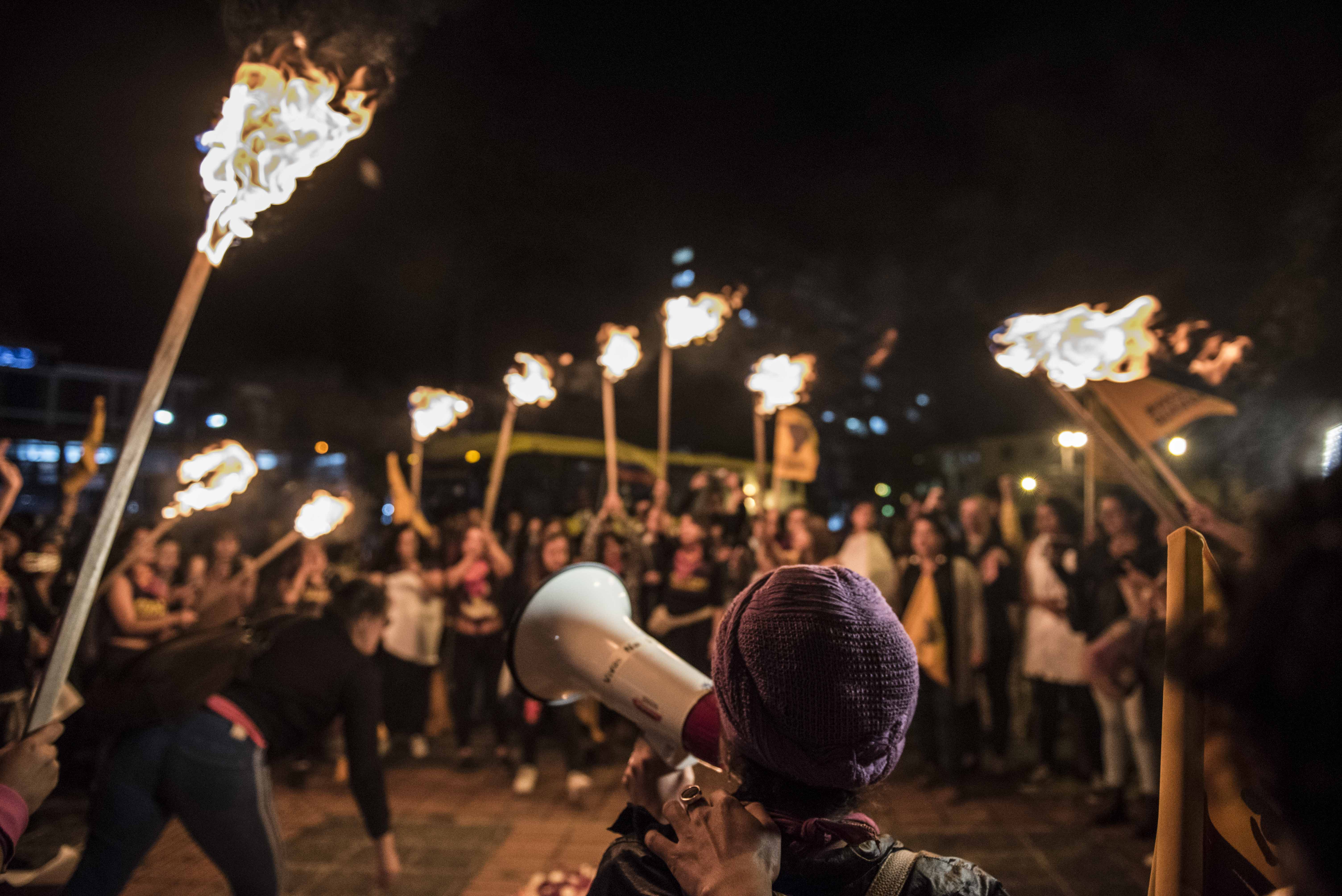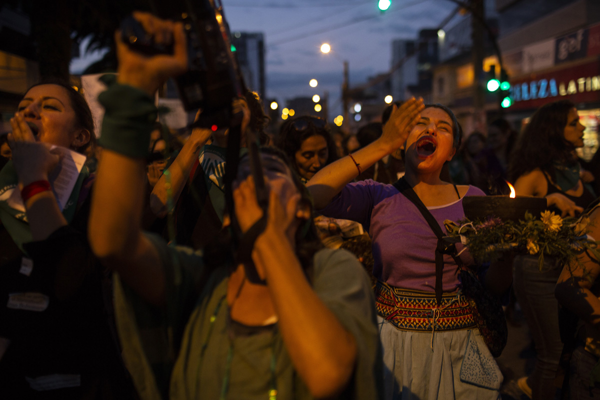 La multitud planificó una acción movilizadora frente a la fachada de la Fiscalía General del Estado, donde cientos de procesos están estancados. «A la le quedan dos caminos, estar con las mujeres o ser sus asesinos», gritaban las mujeres al ritmo de los tambores. Esta entidad atendió 66 506 casos de violencia machista durante 2018. Sin embargo, los fiscales y jueces especializados en violencia de género son tan escasos en Ecuador que jamás podrían alcanzar a cubrir estas demandas. «Hay que ver las cosas que pasan, hay que ver las vueltas que dan, con mujeres que caminan pa’adelante y un gobierno que camina para atrás».