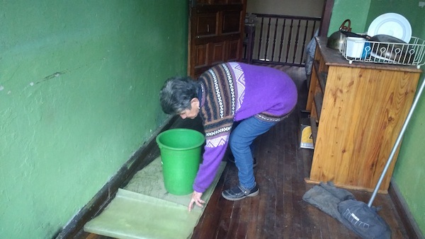 “Los viejos terminamos siendo un estorbo”, dice, mientras seca los charcos de agua que se reflejan en el piso de madera. “Después de los terremotos, las tejas se movieron. Ahora cae agua por todo lado. Hubo que sacar el cielo falso porque se iba a caer. Mi sobrino, el que vivía conmigo, se tuvo que ir porque el Municipio dijo que ya no podía vivir nadie aquí, pero yo no me voy. Me querían llevar a Loja, pero yo allá no vuelvo. Yo me acabo con mi casa”, dice.