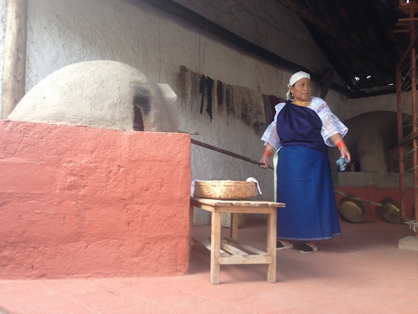 El rodaje de este soleado sábado fluye como si se tratara de un día de reunión con la familia en pleno. Alguien ha llegado con una bandeja y una jarra con jugo de piña bien frío. Alguien más ha repartido plátanos y el olor de la leña transformándose en carbón me hace sentir en el pasado. Una sobrina de Alberto, la pequeña Ainy, de doce años, es la protagonista de esta pequeña historia que consiste, simplemente, en invitar a los espectadores a visitar la casa galería de don José y doña Marina, luego de mostrar la choza ancestral y el taller tradicional de tejido. Ainy no habla kichwa pero conoce a la perfección el inglés y se comunica también en español. Junto a sus padres vive en Londres y ahora están de visita en casa de sus abuelos. Por eso, don José y Alberto decidieron aprovechar para crear esta pieza audiovisual que ha demorado en rodar dos días. Aún queda por hacer las tomas de la cascada de Peguche y otros sitios turísticos de la zona. Es que ya hace años que Peguche y Otavalo diversificaron sus actividades productivas y el turismo, especialmente, se convirtió en una importantísima fuente de ingresos. Según un estudio difundido por el Ministerio de Turismo del Ecuador, la provincia de Imbabura recibe al 18 % de extranjeros que llegan a Ecuador, y Otavalo es el principal destino de toda la provincia. Don José lo sabe y por eso apunta a “difundir nuestra cultura para que se sepa lo que somos y para que no nos olvidemos de nuestras tradiciones. Ahora ya nadie usa los telares, todo es con máquinas, y los jóvenes ya ni siquiera quieren vestirse como nosotros, usan jeans y camisas, nomás”. Pero sabe también don José que el único capaz de llevar a cabo el plan de promoción de su casa galería es Alberto, el cineasta de los pueblos indígenas. Ellos dos comparten su forma de ver la vida y han asumido, cada uno por su lado, la vocación por la defensa de la identidad del pueblo kichwa otavalo.