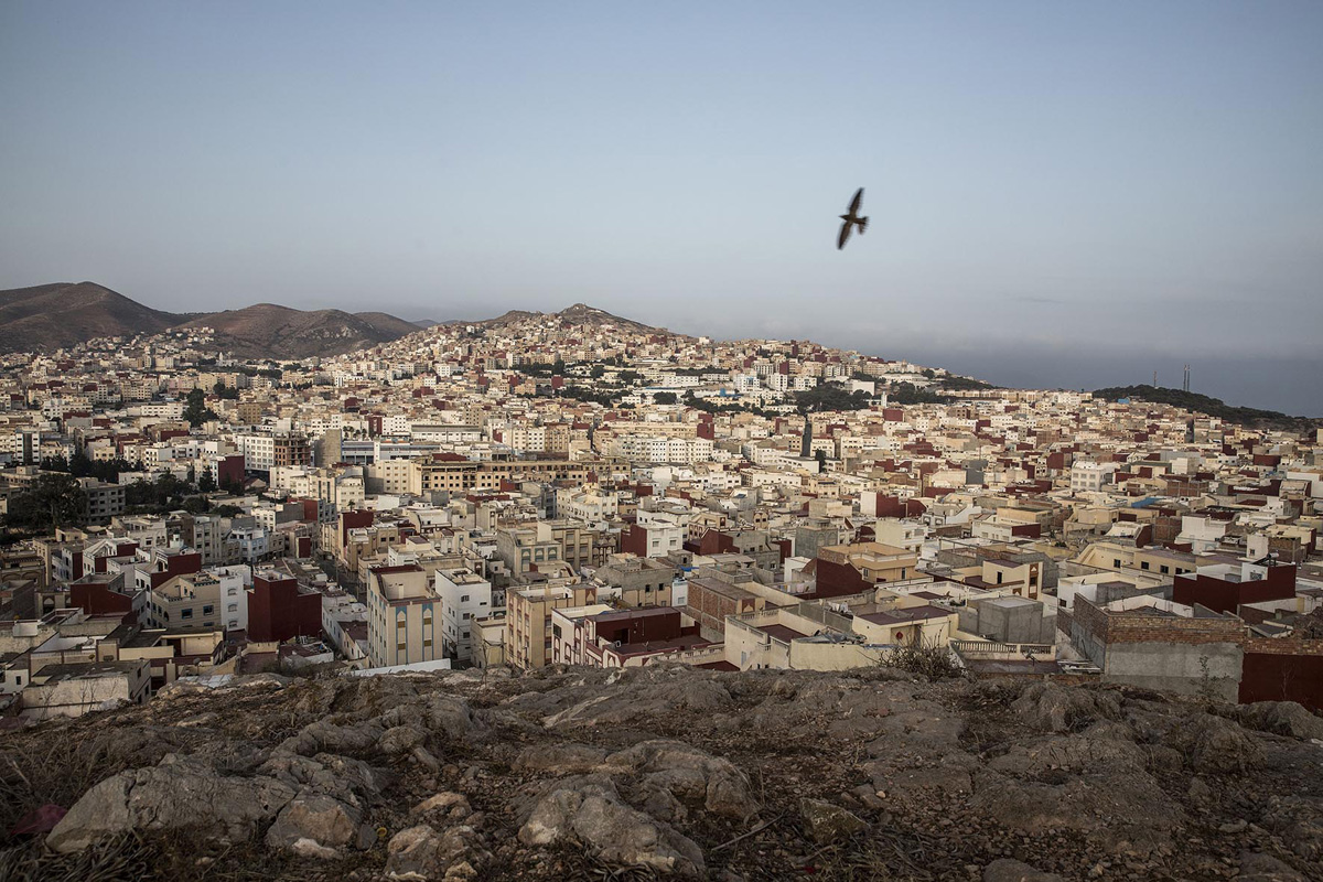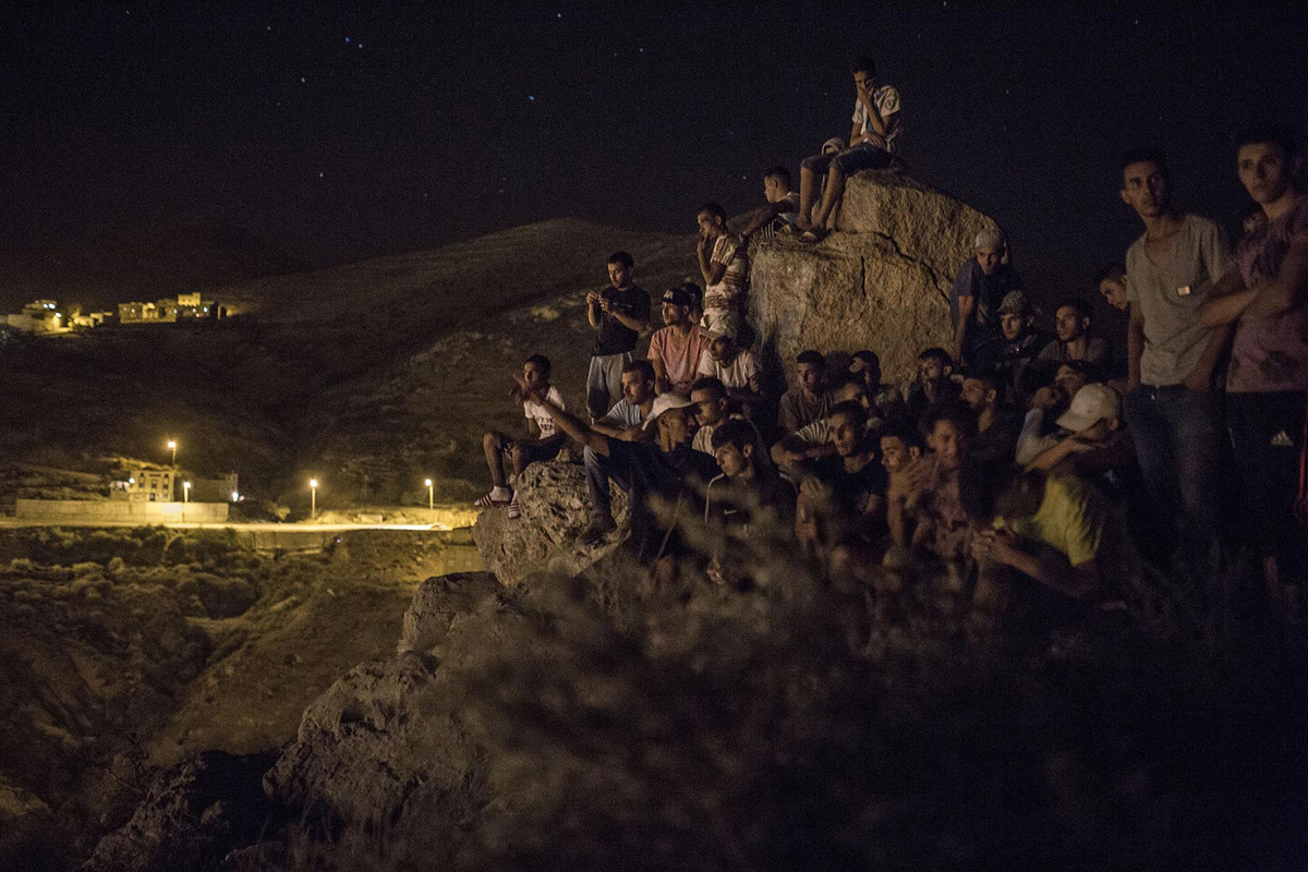 Un grupo de jóvenes de los barrios periféricos de Alhucemas observando la ciudad desde las montañas cercanas. La falta de trabajo es uno de los principales problemas sociales de la región.