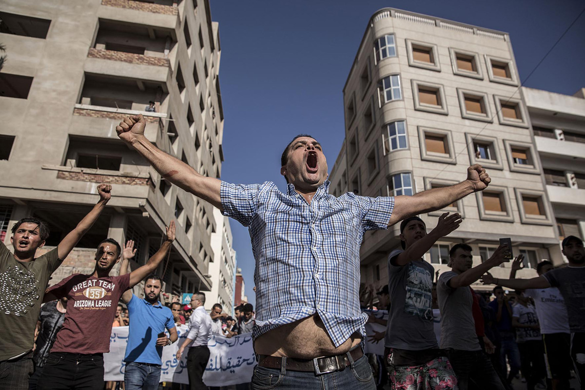 Un hombre grita a la policía durante las protestas del día 20 de julio en Alhucemas. A pesar de que el Gobierno prohibió la manifestación, miles de personas salieron a las calles.