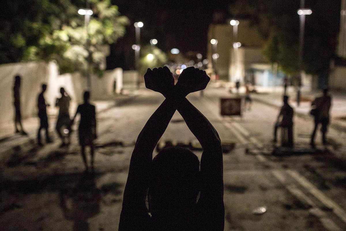 Jóvenes del barrio de Afazar se enfrentan con la policía para impedir que entren al barrio a detener activistas un día después de la gran manifestación del 20 de julio. En ocasiones el intercambio de piedras y botes de humo dura toda la noche.