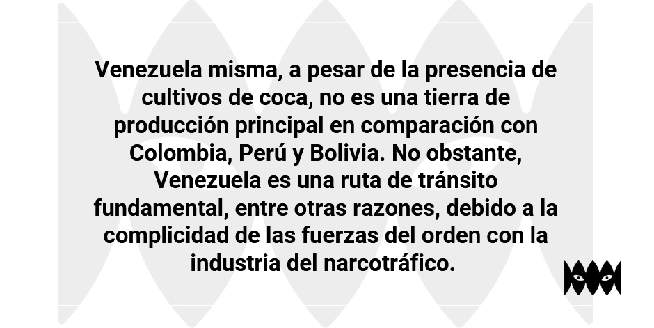«¡Se oyen esas motos y motores por el río y son ellos que andan en la noche para pasar sus cosas ilícitas!», exclama una fuente del municipio Maroa, Venezuela, sobre el incremento de narcotráfico sobre el Río Negro. Las nuevas dinámicas exacerban las presiones de la industria de la droga en territorios indígenas y rutas clandestinas de la selva, algunas ya se han convertido en corredores principales del narcotráfico durante los últimos años.
