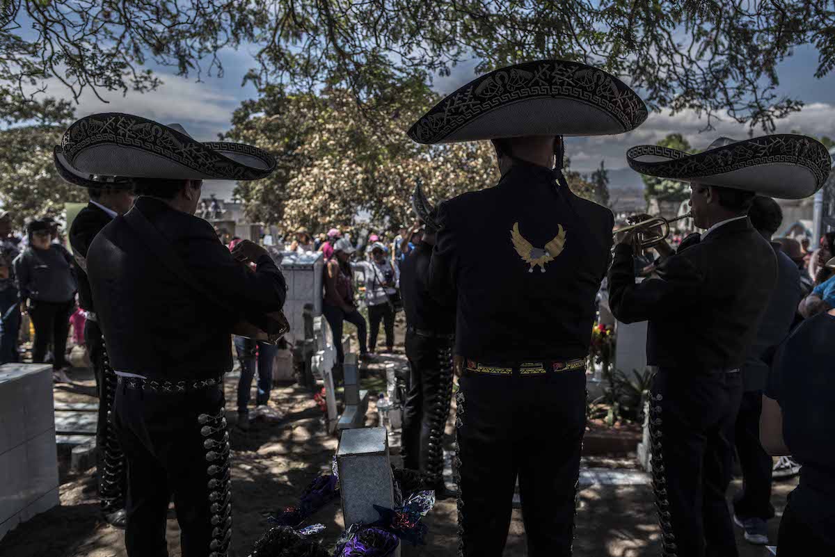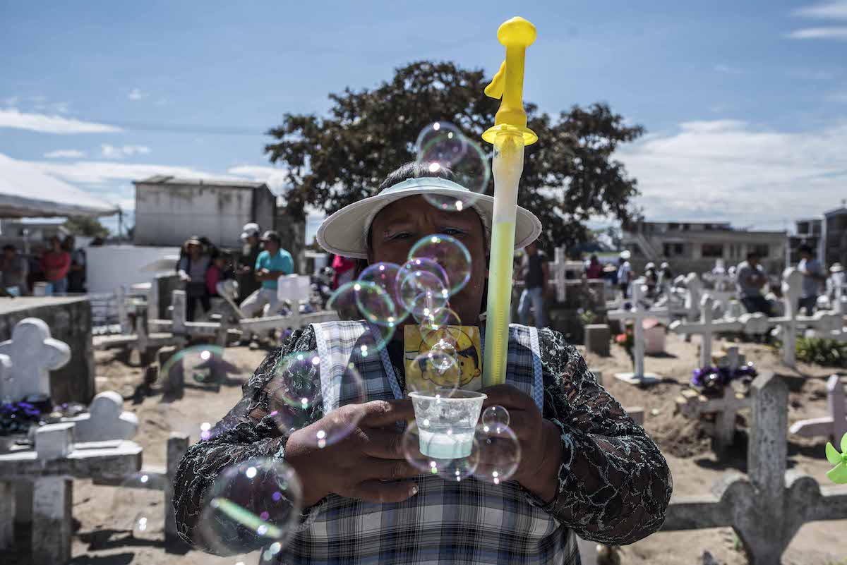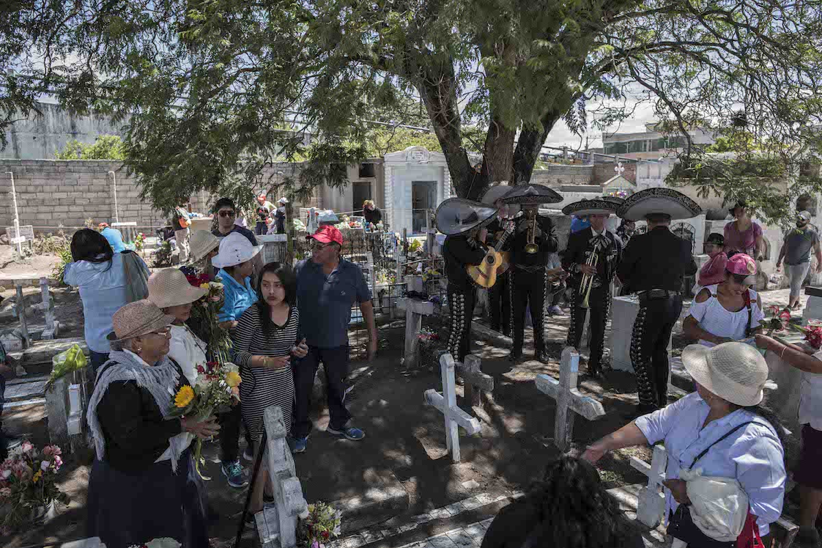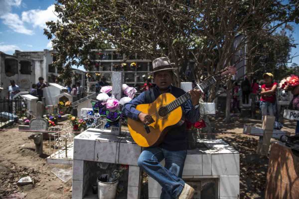 De acuerdo con la cosmovisión andina, los difuntos este día están de fiesta, por eso también hay música. Algunos entonan yaravíes acompañados de una guitarra, como se acostumbraba durante la colonia; otros, más globalizados, prefieren el mariachi o las serenatas con tríos. «Para despedir bailando o con lágrimas, según sea la interpretación, ya que en vida el muertito disfrutaba esta música», nos comenta don José Farinango, de 53 años. Avanzada la mañana, don José ha visitado ya el cementerio de Llano Grande, ahora está en el de Calderón y luego acudirá al de Oyacoto, para seguir compartiendo canciones con su guitarra y con su familia.