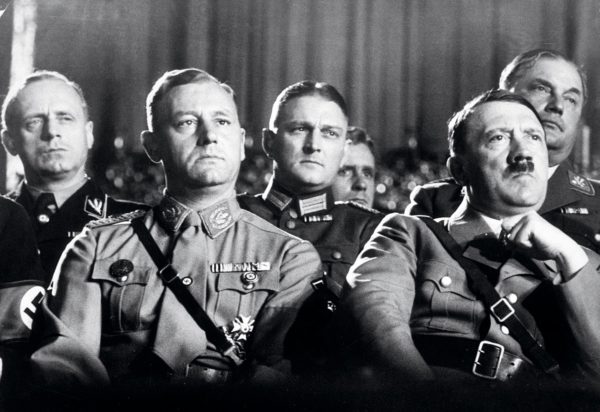 La muestra arranca con el documental El Triunfo de la Voluntad (1935), de la cineasta Leni Riefenstahl, que exalta las prácticas y símbolos del nazismo, en especial, del carácter de su líder máximo en el congreso del partido. Hitler se pronunciaba así: “Ante Dios y el mundo, el más fuerte tiene el derecho de hacer prevalecer su voluntad”. En el mismo esfuerzo épico se encuentra El Nacimiento de una nación (1915), de D.W. Griffith, clásico del cine mudo que narra de forma patriótica el mito de Estados Unidos como pueblo escogido para promover orden y progreso. Esto incluye la guerra civil, el asesinato de Lincoln y la glorificación del Ku Klux Klan.
