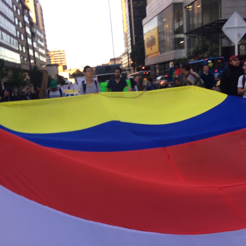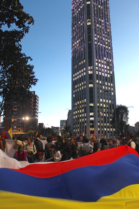 Mientras todo esto ocurre cada semana, continúan llegando carpas para instalarse en la plaza central de Bogotá y ahora, tres semanas después, han ocupado gran parte del predio, con carteles impactantes como “le han dado golpe de estado a la paz”.