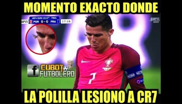 Dicen algunos memes que Cristiano Ronaldo (CR7) no hizo nada en la final de la Euro 2016. En realidad, hizo todo. Si no se lesionaba, Portugal no se acordaba de jugar fútbol. Si no se iba llorando la «superestrella», los jugadores que quedaron en la cancha no se daban cuenta de que su estrategia: Pepe-Cedric-Nani-Ronaldo, no iba a funcionar. Lo mejor que hizo Ronaldo fue irse. De esa manera, Renato Sanches, Joao Mario, Raphaël Guerreiro y José Fonte pudieron mostrarse. Portugal no era un mal equipo, simplemente no había podido mostrar que era un equipo. Al salir del campo Ronaldo, Portugal dejó de ser un equipo de cuatro jugadores y un arquero, y pasó a ser el equipo de once que mostraría las deficiencias de Francia.