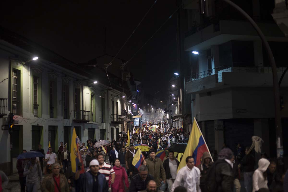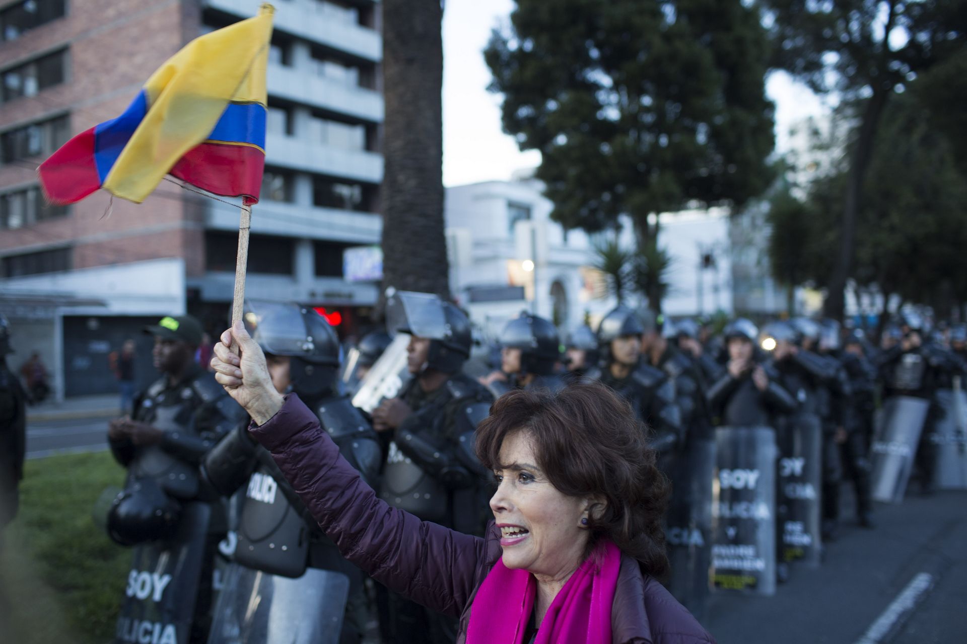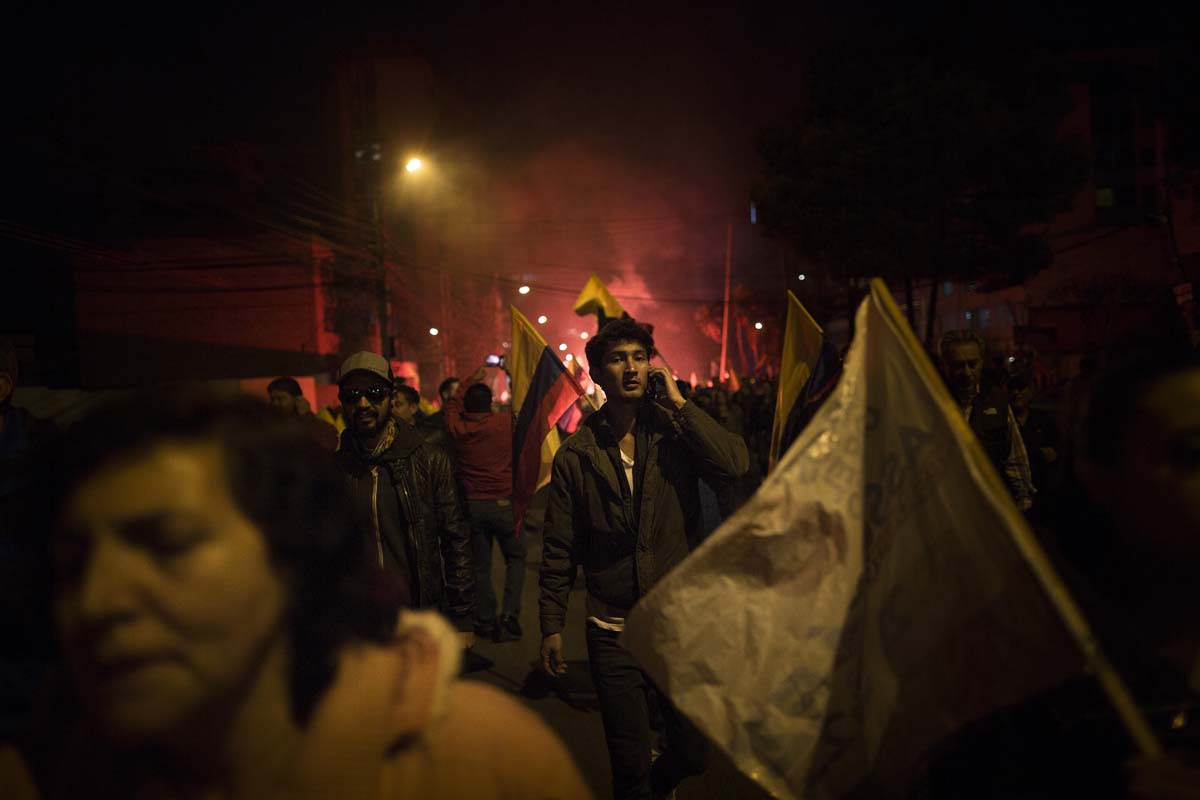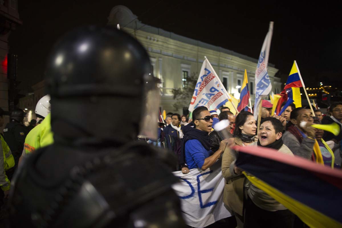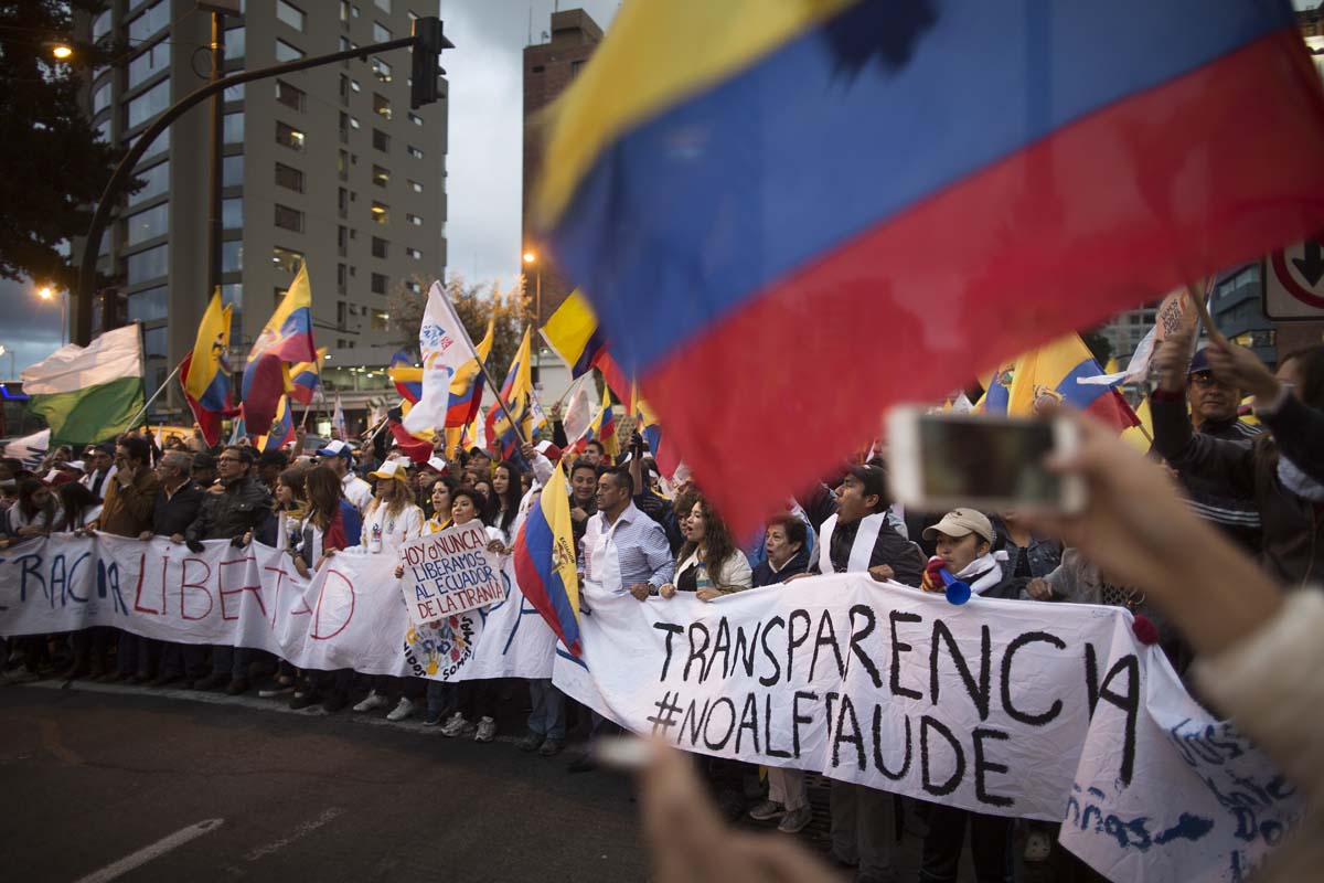 Eran las siete de la noche del 4 de abril de 2017. En la intersección entre las avenidas Eloy Alfaro y De los Shyris, en Quito, resonaban los cánticos que reclamaban el reconteo voto a voto. Tres filas de policías –firmes, sin pestañear y con escudos que decían: “soy hermano, soy padre y me esperan en casa”– resguardaban la zona. Su objetivo: que los manifestantes no se acercaran al Consejo Nacional Electoral (CNE).