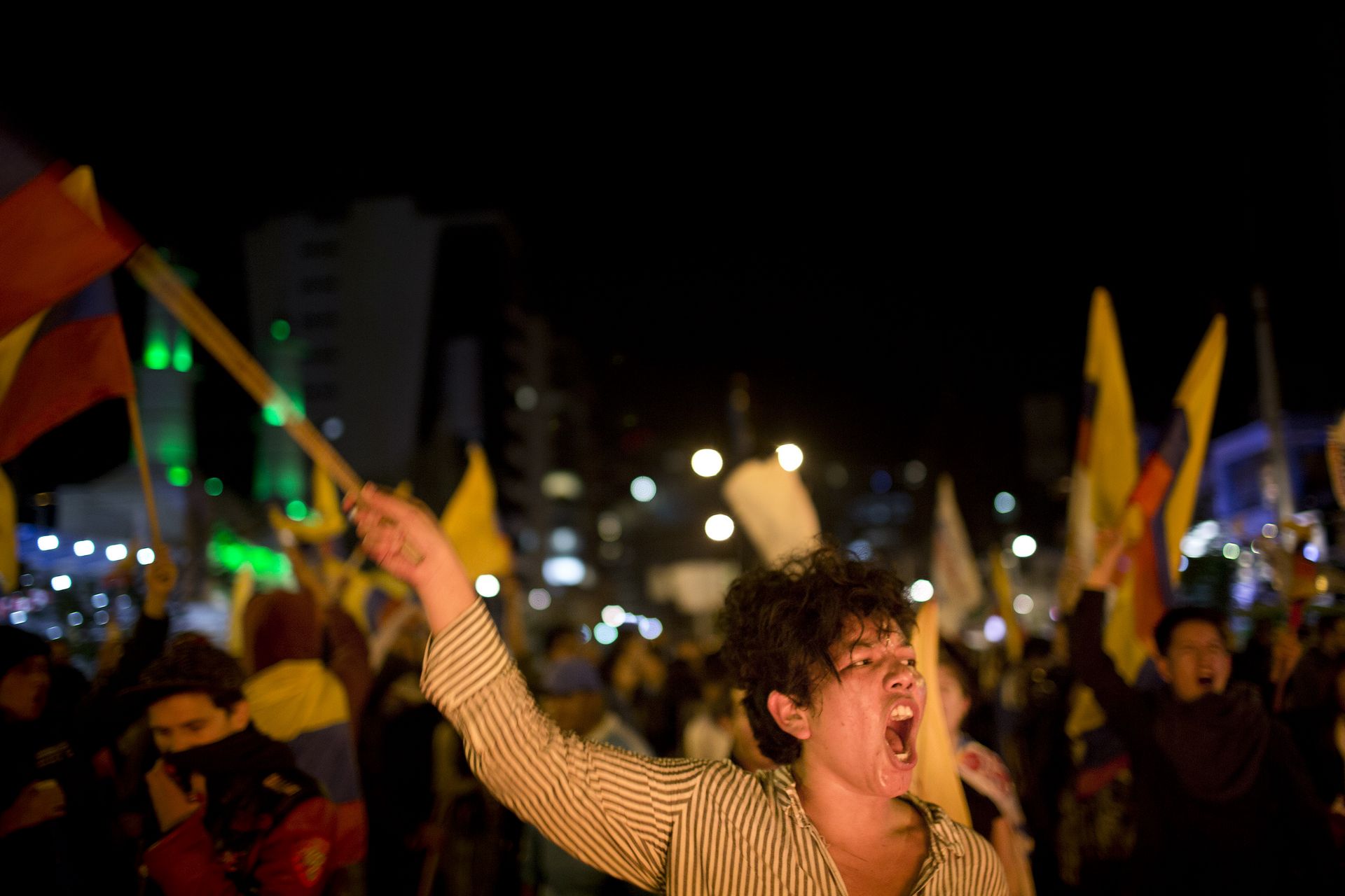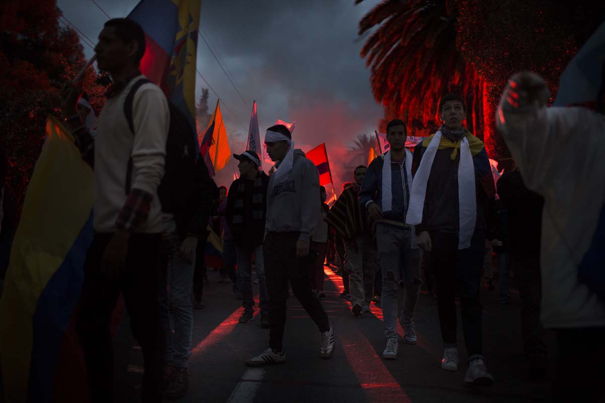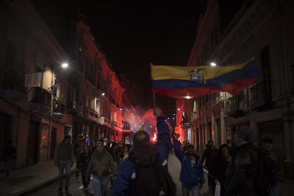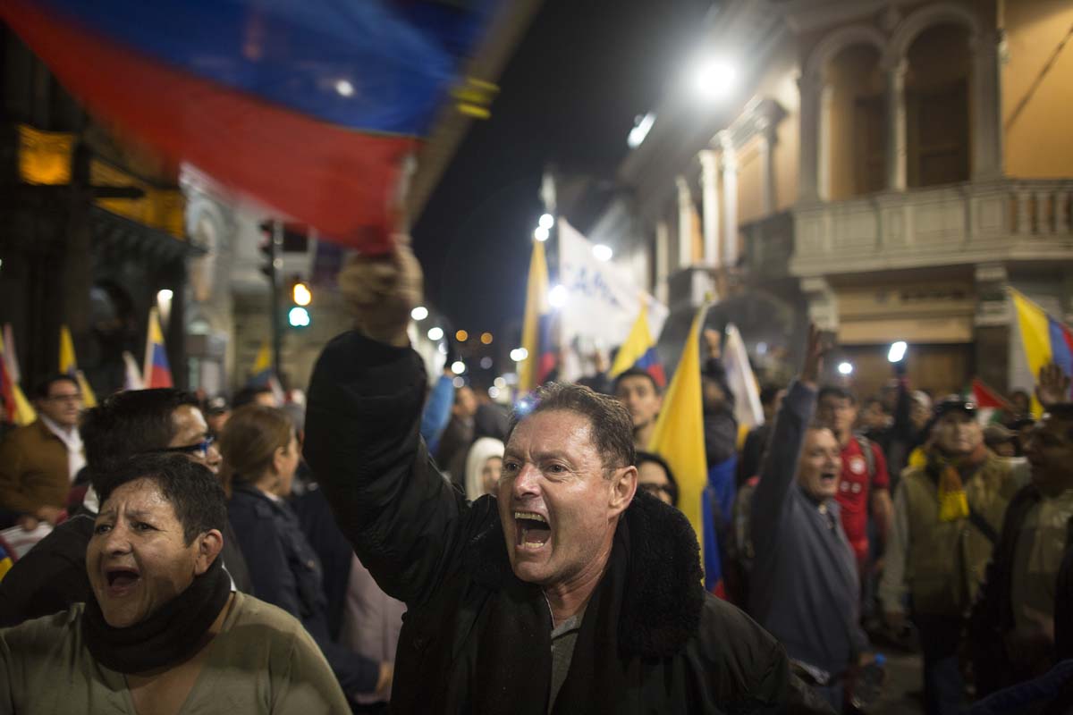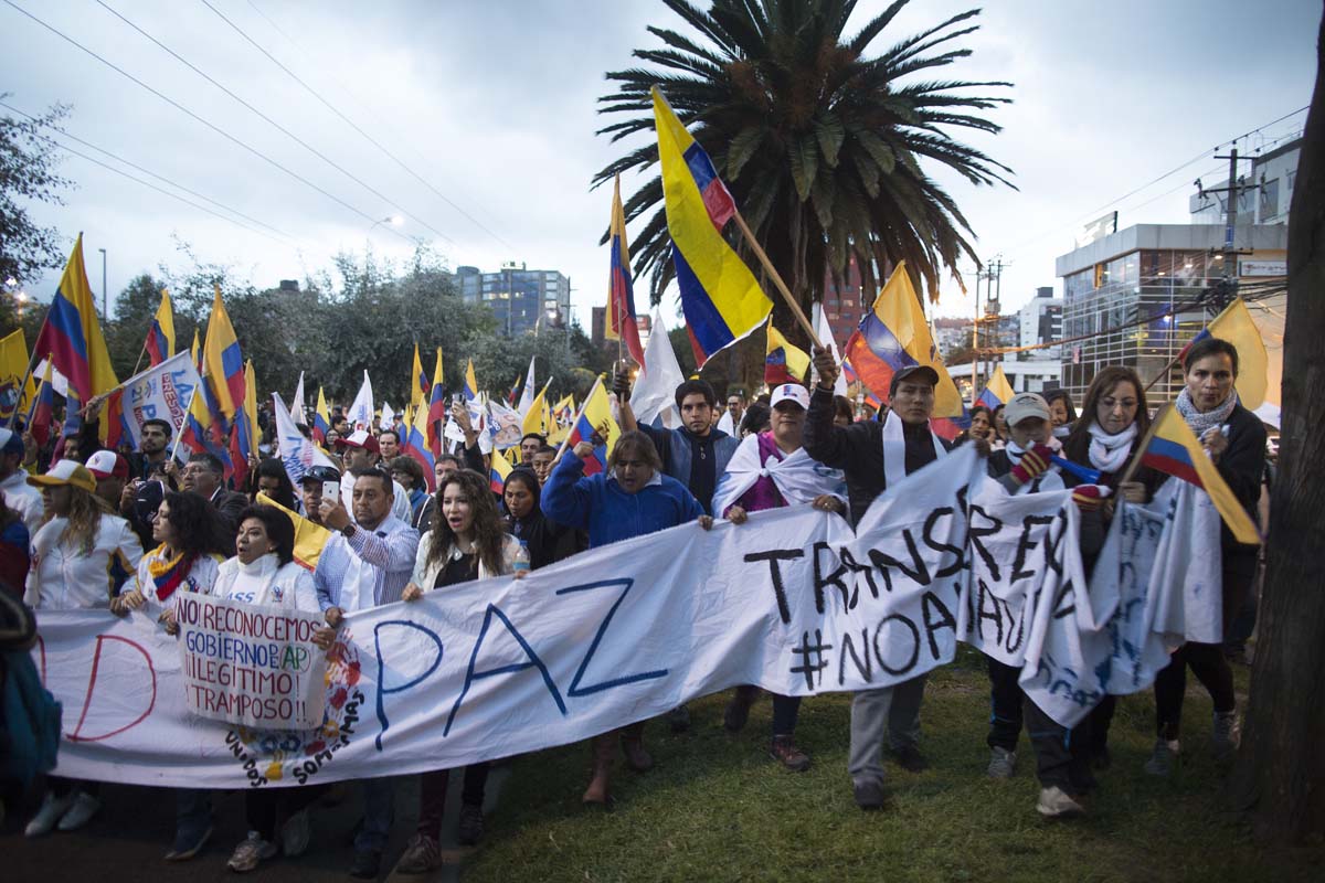 Eran las siete de la noche del 4 de abril de 2017. En la intersección entre las avenidas Eloy Alfaro y De los Shyris, en Quito, resonaban los cánticos que reclamaban el reconteo voto a voto. Tres filas de policías –firmes, sin pestañear y con escudos que decían: “soy hermano, soy padre y me esperan en casa”– resguardaban la zona. Su objetivo: que los manifestantes no se acercaran al Consejo Nacional Electoral (CNE).
