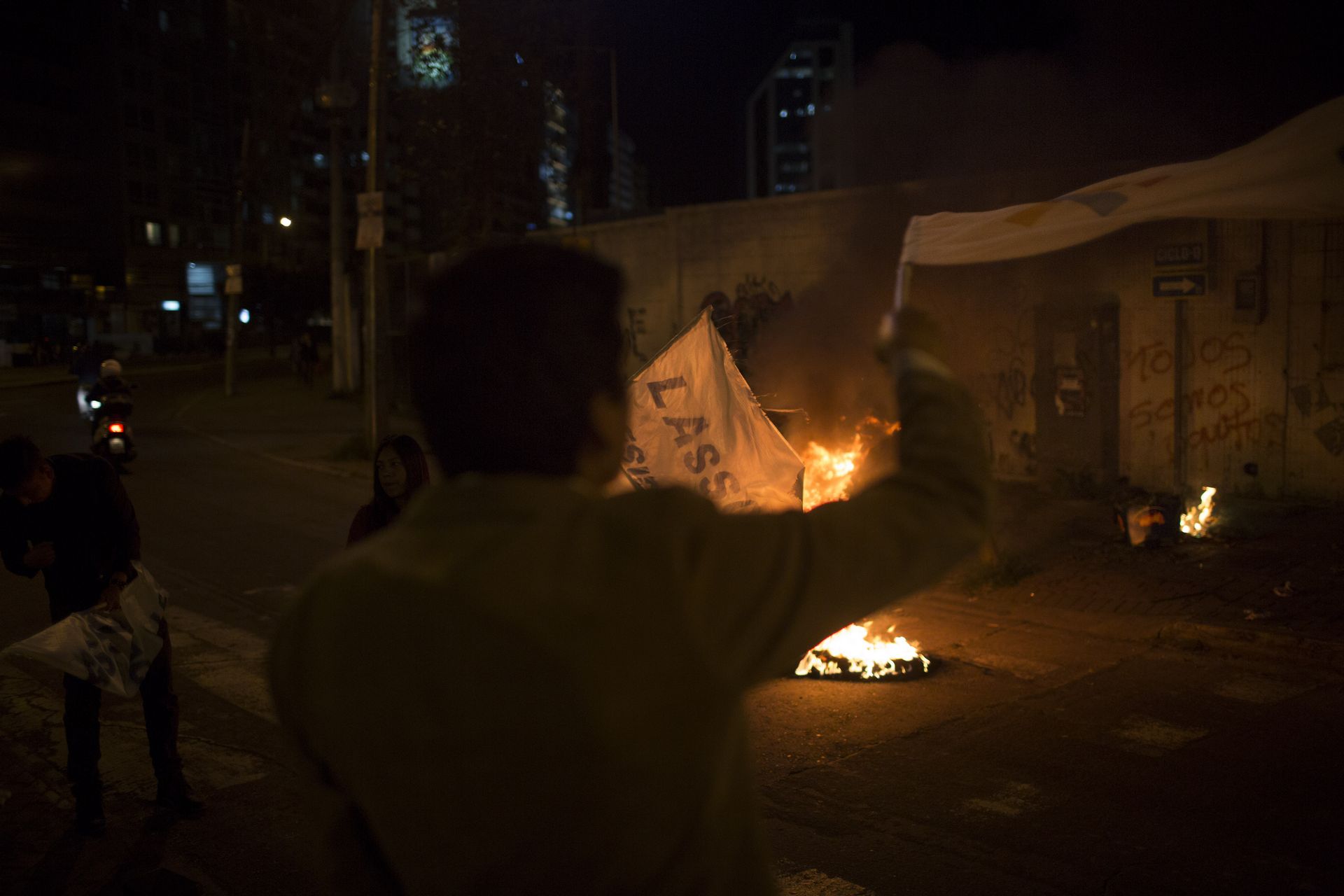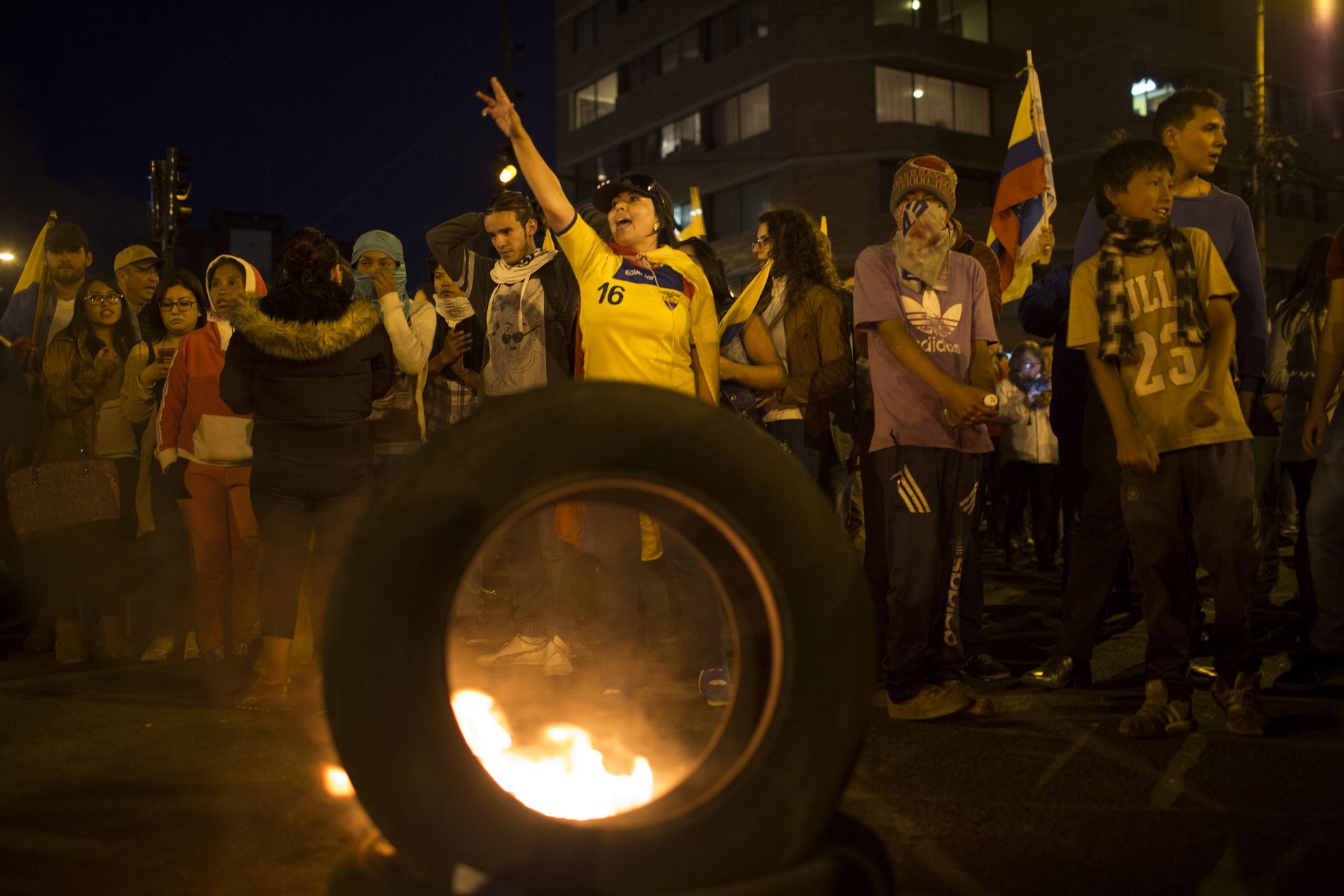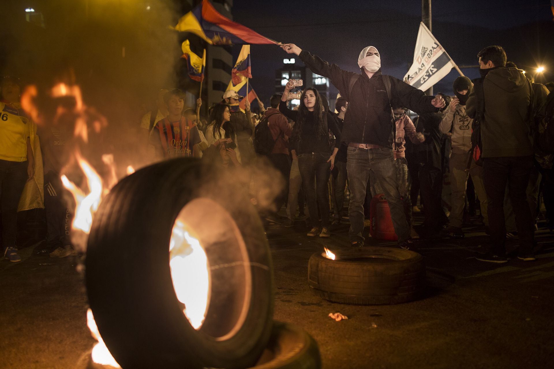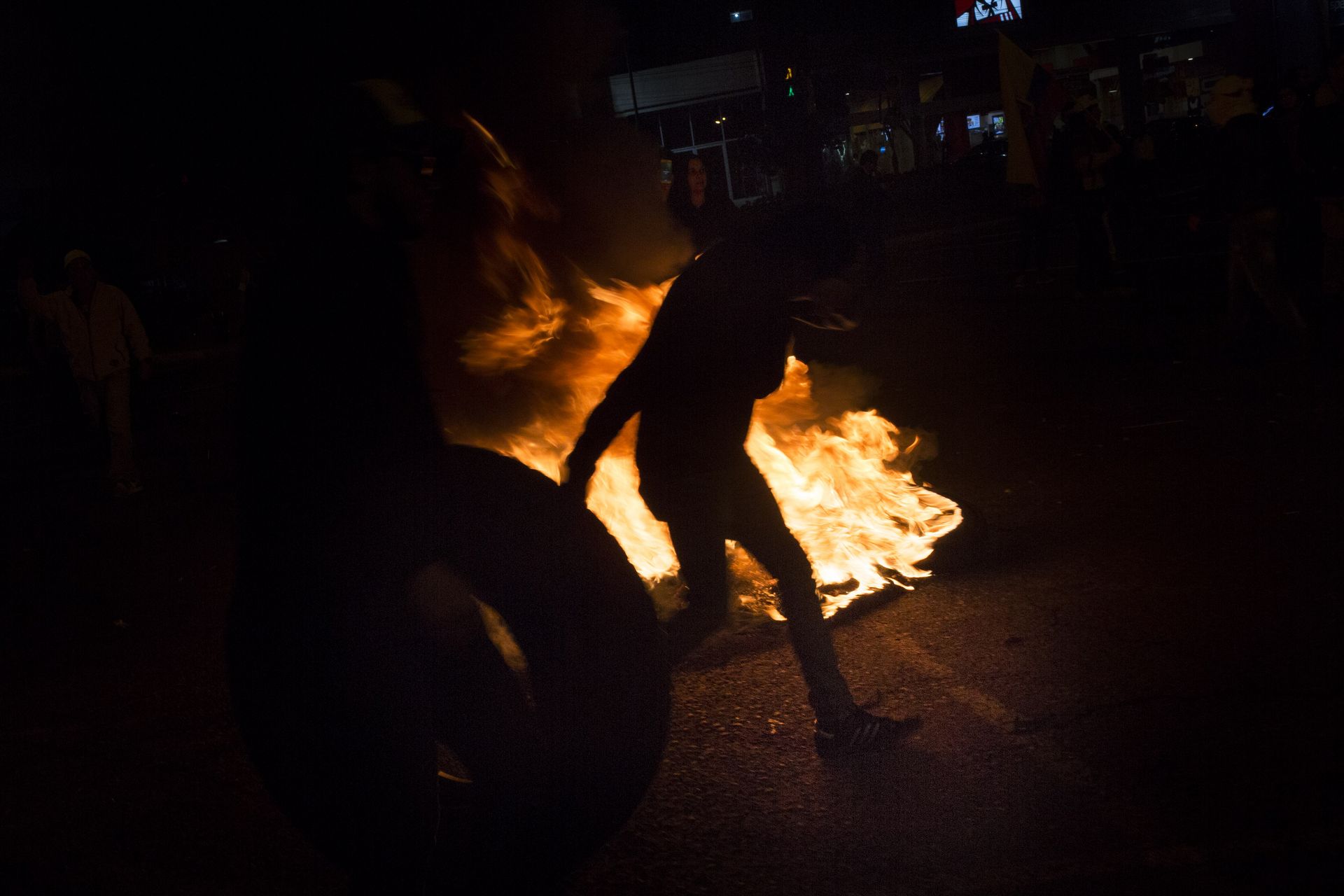 Para las nueve de la noche, transitar por los alrededores del parque La Carolina era imposible. Fogatas en cada esquina, consignas a favor del reconteo y en contra del oficialismo, policías que en moto recorrían la zona. Esa noche, mientras Quito ardía, en Guayaquil, Santo Domingo, Loja y otras provincias, más ciudadanos se movilizaban, no estaban –ni están– de acuerdo con los resultados. Correa se dedicaba a tuitear.