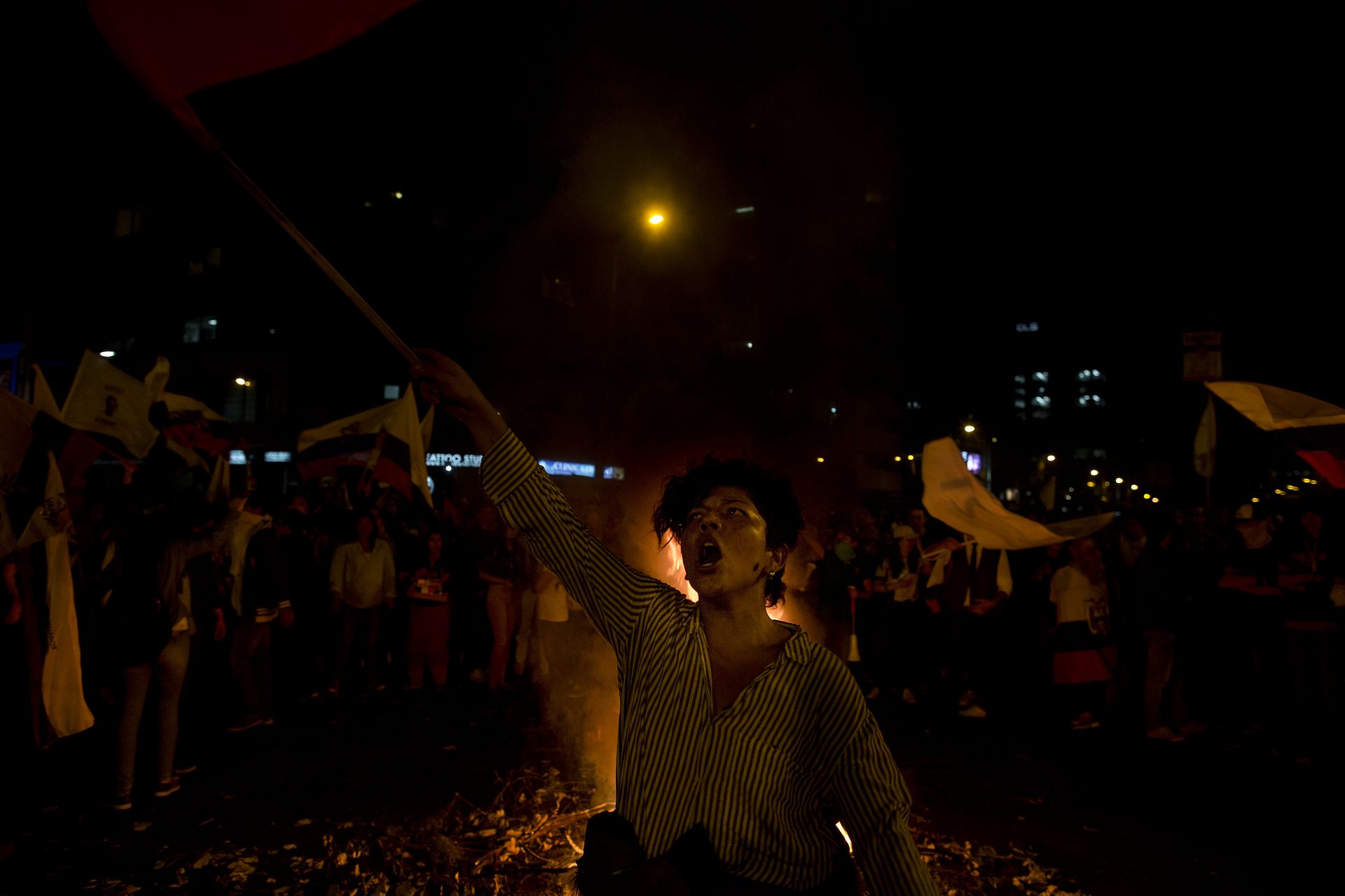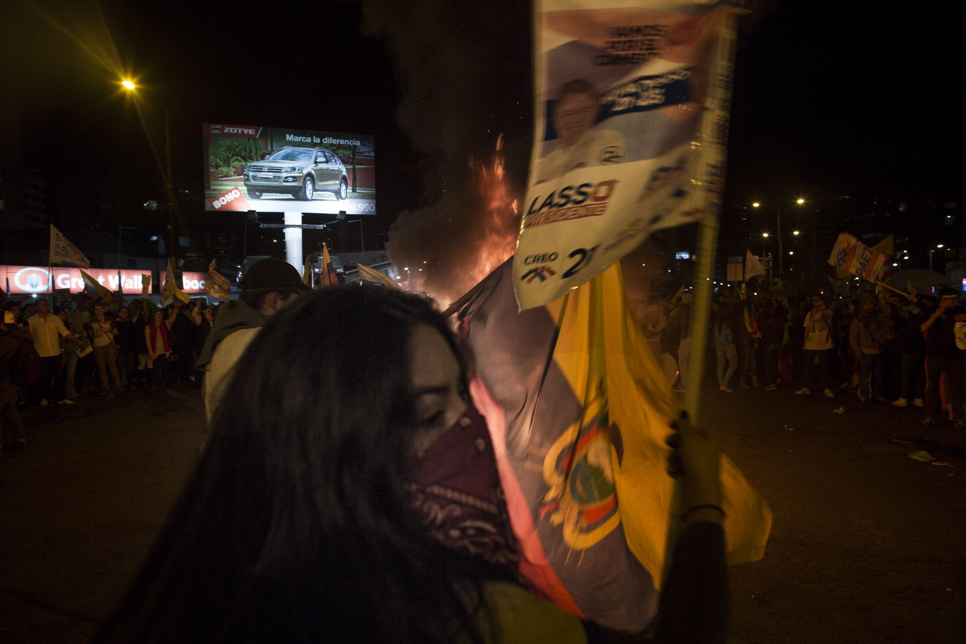 En una de las esquinas del parque La Carolina (Av. de Los Shyris y Av. Eloy Alfaro), la primera fogata se encendió. Las consignas aseguraban el fraude pero, a cinco cuadras, en la Sede de Alianza PAIS (a la altura de la Tribuna de Los Shyris), los cánticos eran de triunfo. Separados solamente por unas cuantas calles y unos cientos de policías, los militantes –de lado y lado– se convertían en el reflejo de los polos existentes en el país: el fuego y las banderas verdes, o estás conmigo o estás en mi contra.