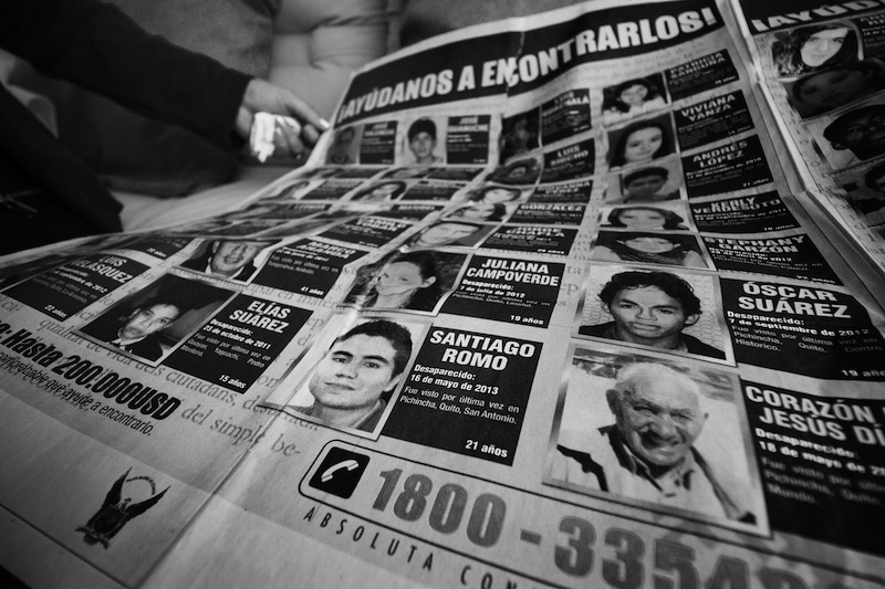 En Ecuador hay más de 3 000 casos de desaparecidos. Hasta diciembre del 2015, según datos de la Fiscalía General del Estado, 1 718 casos de desaparecidos estaban en proceso de investigación.
