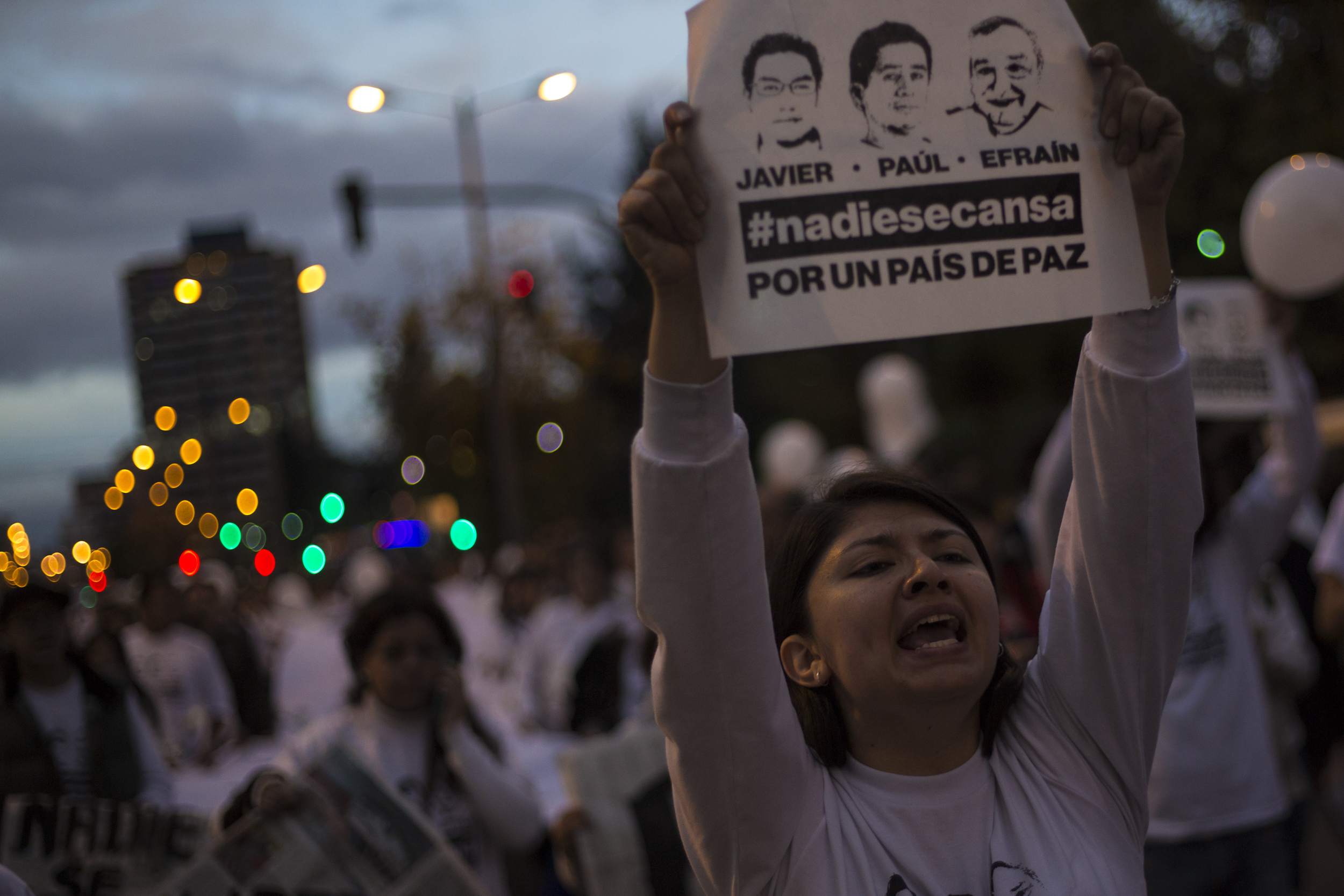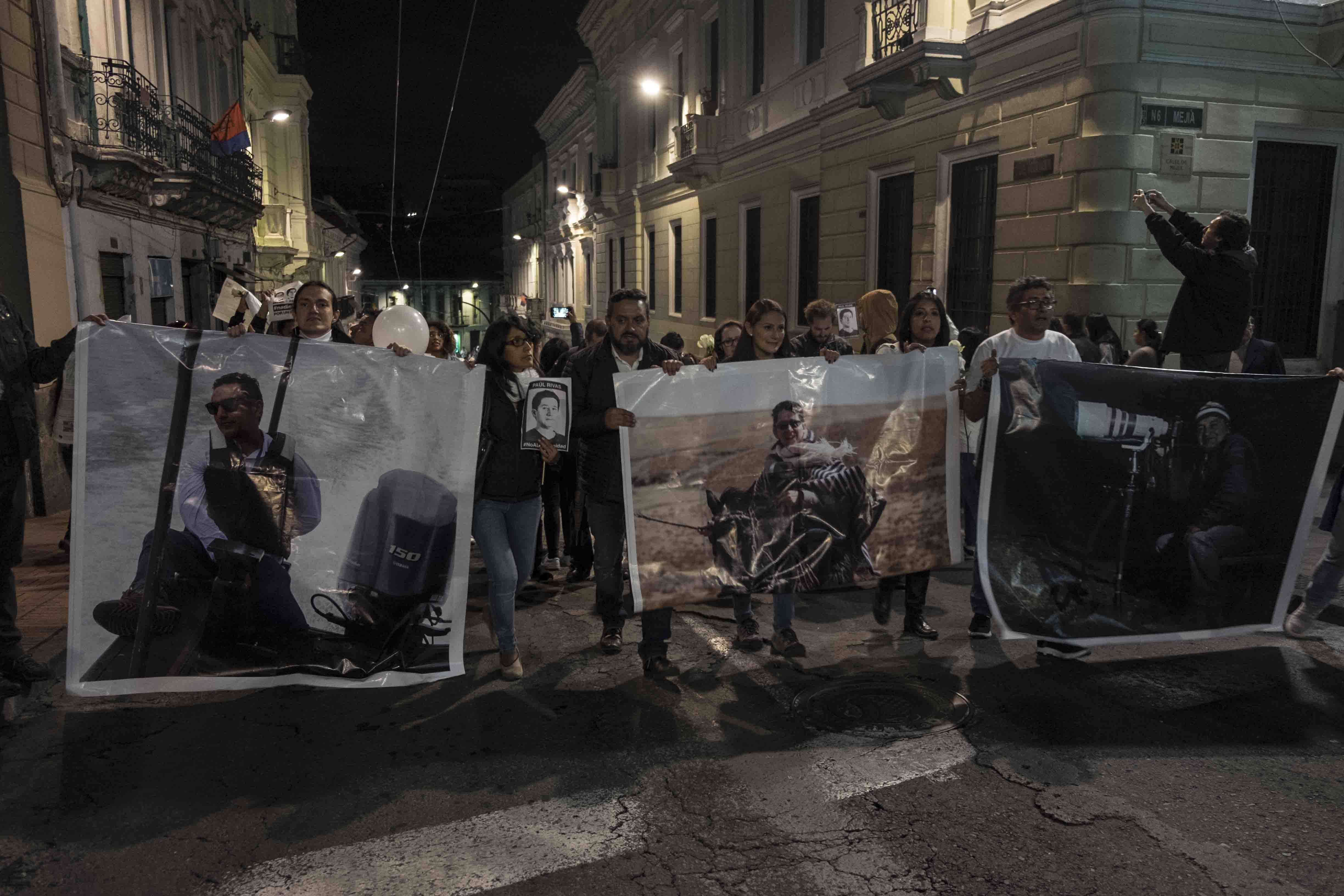 Era jueves por la tarde y en las calles quiteñas marchaban miles. Habían pasado 24 días desde que el fotógrafo Paúl Rivas, el conductor Efraín Segarra y el periodista Javier Ortega, de diario El Comercio, habían sido secuestrados en la zona fronteriza con Colombia.