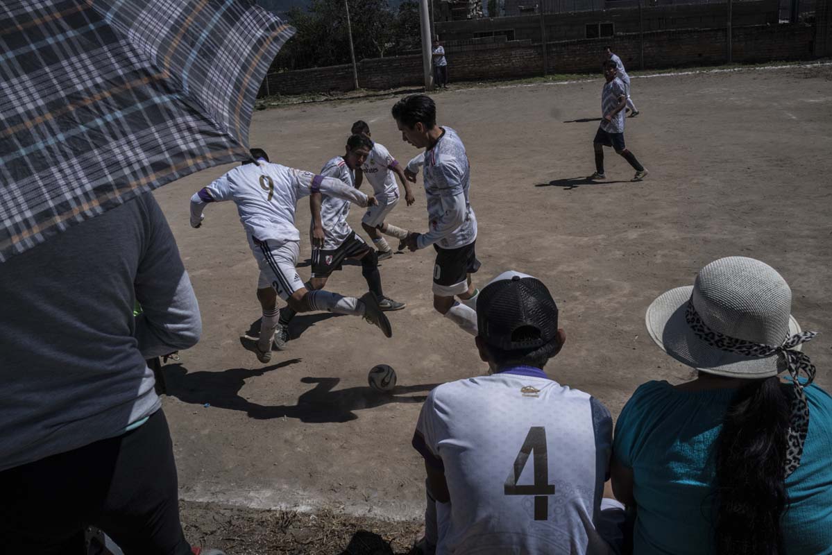 Partido de futból en La Tola Chica que se realizó en el marco de las celebraciones de El Inti Raymi por el pueblo Kitu Kara de la nacionalidad Kichwa. La Tola Chica, Pichincha, Ecuador. 02/07/2017.