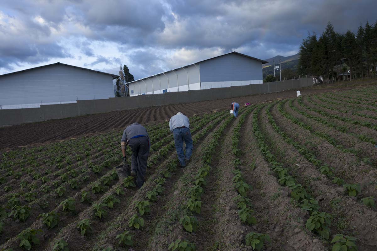 Agricultores de la Comuna de Oyambarillo ubicada en el nororiente a 35 minutos de la ciudad de Quito arrojan abono a su cultivo durante el recibimiento al patrono San Pedro en El Vergel en el marco de las celebraciones anuales de la Fiesta de San Pedro Inti Raymi. Oyambarillo, Pichincha, Ecuador. 07/07/2017.