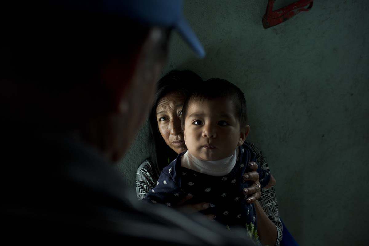 Segundo Manuel Cacaín Conde de 72 años es partero y sanador, por sus manos han pasado mas de 800 bebes que vieron la luz a través de sus manos. En la foto Carmen Gómez sostiene a su nieto Damian Ortiz para curarlo de 2espanto». Oyambarillo, Pichincha, Ecuador. 04/07/2017.