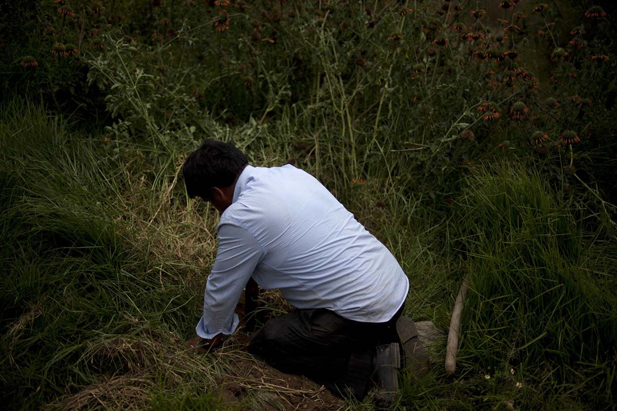 Medición satelital y colocación de hitos en territorios del pueblo Kitu Kara en la Comuna la Tola Chica. Las comunas y comunidades presentes en el DMQ son territorios con continuidad histórica que responden a una forma de organización territorial colectiva cimentada en la propiedad comunitaria de la tierra.Comuna Tola Chica, Pichincha, Ecuador. 05/07/2017.