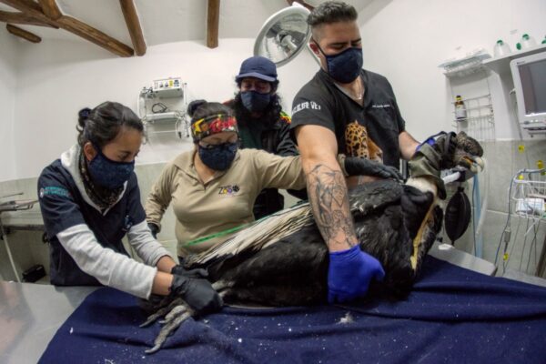Inmediatamente lo llevamos al hospital veterinario MediPet, donde esperaba Alejandra, médica veterinaria del Zoo. Se realizaron todos los exámenes clínicos necesarios, radiografías y muestras de sangre para evaluarlo y las imágenes radiológicas revelaron que tenía un perdigón alojado en la zona muscular del pecho. A la madrugada fue trasladado a la clínica del Zoológico.