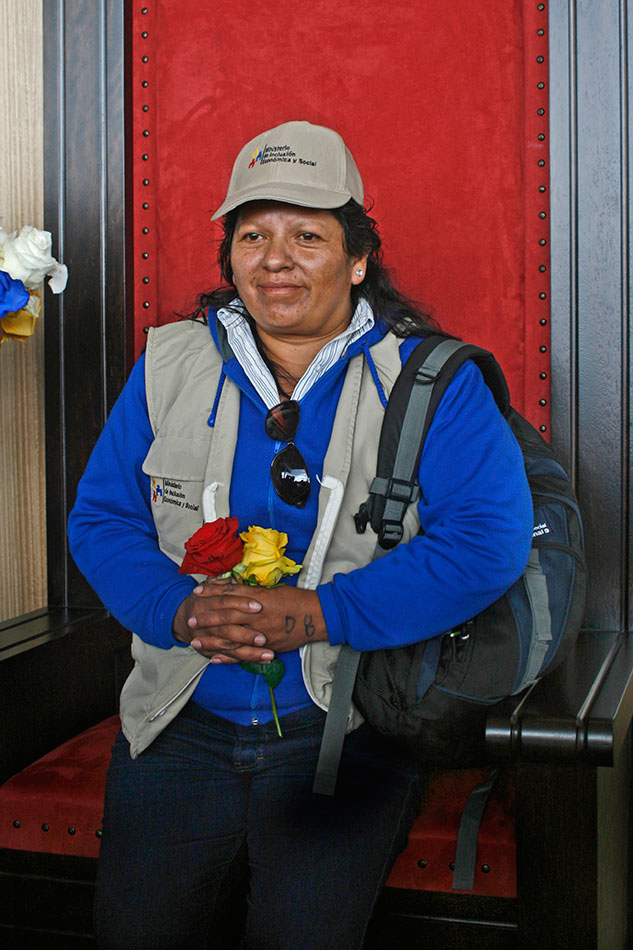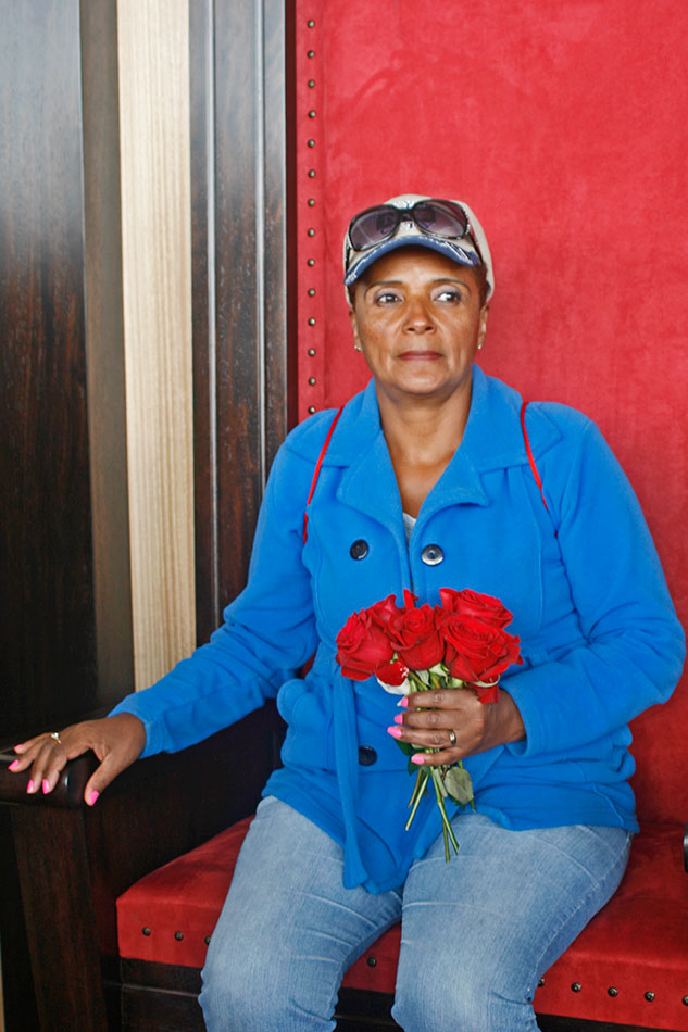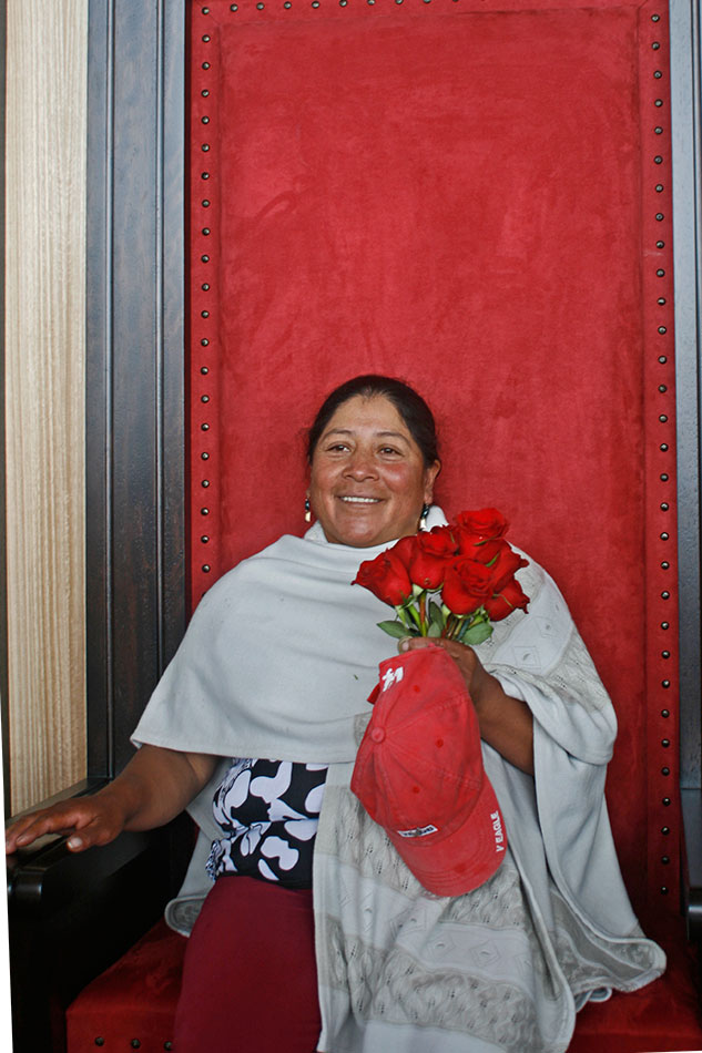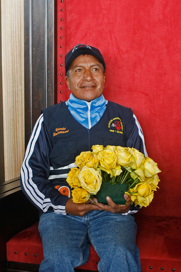 Un hombre llegó apurado y medio cabreado, con su cámara colgada al cuello. «Ya, ya, salga, señora, ¡siguiente!». Su mujer iba atrás, cargando unos cuantos aparatos que instaló sobre el altar en cuestión de segundos. «A ver la foto instantánea, a dos cincuenta, la foto». Detrás del fotógrafo caído del cielo, familias enteras arrancaban las rosas de exportación, tinturadas de azul o de añil para la ocasión, y se las llevaban en baldes, en canastos, en grandes planchas de espuma flex, al hombro. ¡Clic! Unas cuantas chicas asignadas al cuidado de los arreglos intentaron evitarlo: «¡No se lleven esas rosas que son para la misa de (¡Clic!) mañana en (¡Clic!) El Quinche, por favor!», pero fue inú (¡Clic!) til.