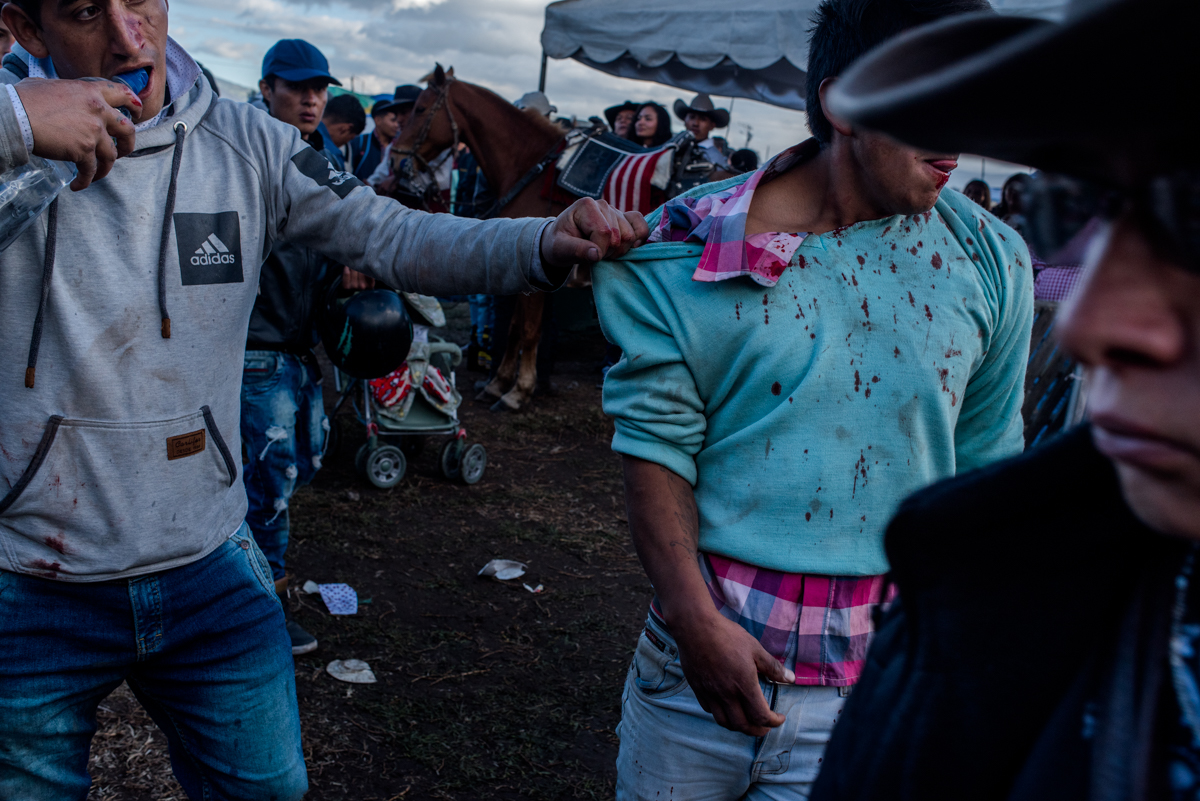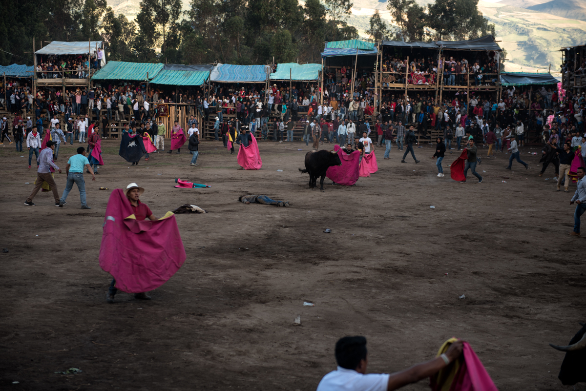 Pero esta fiesta y quienes participan de ella son parte de un trajín caótico en el que solo se recobra el orden si ocurre alguna desgracia, como que los asistentes más ebrios sean embestidos por el toro, o como las riñas dentro del ruedo, calificadas como faltas graves y castigadas con una dosis de violencia casi igual que la que mereció dicha condena. De todos modos, las riñas, la borrachera, los heridos y, a veces, las víctimas mortales, son previsibles. La sangre y el alcohol se riegan sin reparo en cada rincón de la plaza de toros.
