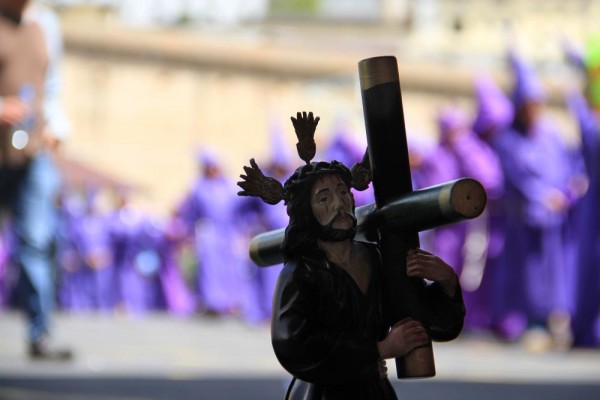Un penitente avanza debajo de un madero. Va hundido. Va delante de la cadena cansada que arrastra. Va lento y hundido. Va con cinco dólares menos. Siento que acompañarlo es una manera de hacer más llevadero su peso y hasta llego a creer que así también exculpo mis propios pecados. Luego, me despido. Él continúa con sus penas, yo con las mías.
