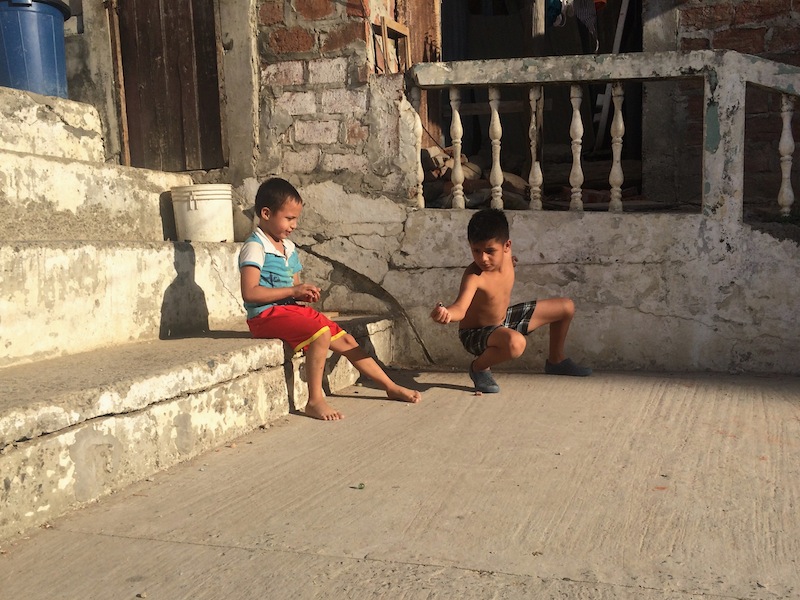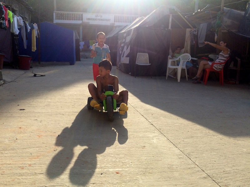 El camión de agua se retira ya ligero. Poco a poco retorna la intensa actividad a esta plaza de Bahía. El olor a arroz recién preparado y plátanos fritos inunda el ambiente. En la orilla del mar, un par de pequeños trozos de ladrillo retozan y se balancean al ritmo de la marea. Felipe y Daniel ya no lloran como hace seis meses. Ellos juegan a sobrevivir.