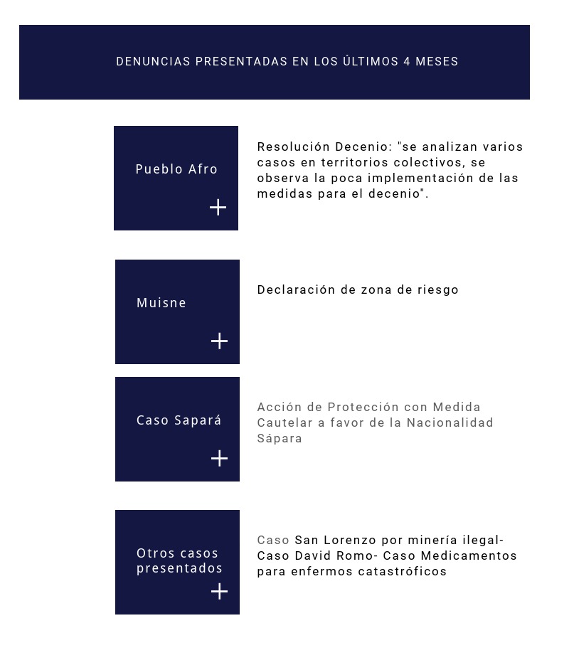 …hemos hecho una misión de verificación conjunta con el pueblo siona, entre la Defensoría del pueblo de Colombia y la de Ecuador, y nos está dando algunos elementos de lo que podría ser el trabajo por los territorios indígenas binacionales, las formas de organización propias de las organizaciones indígenas, como las guardias indígenas, la afectación por parte de actores armados pero también por modelos y prácticas de empresas extractivas petroleras o mineras.