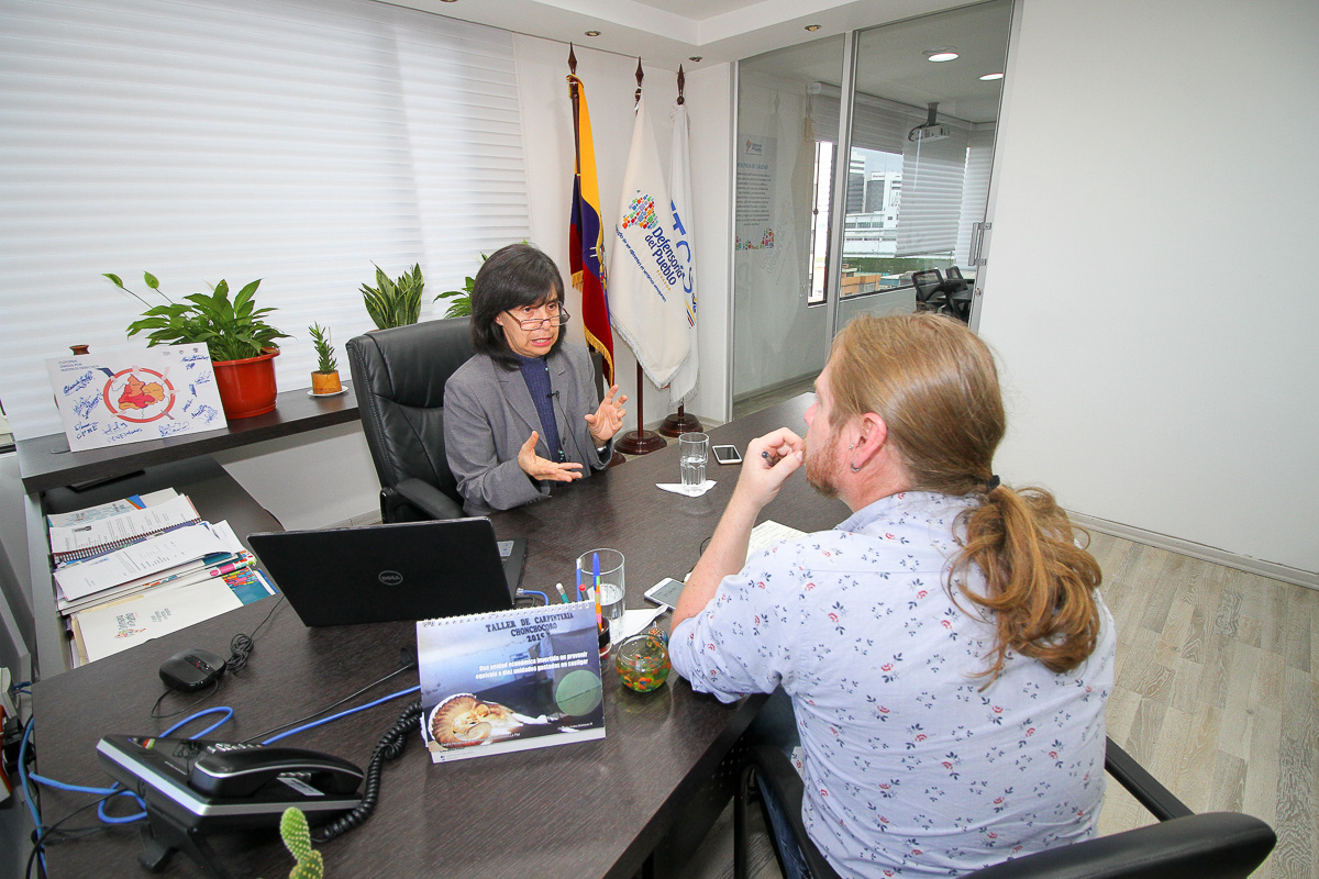 Gina Benavides asumió el encargo de la Defensoría del Pueblo en mayo del 2018, por disposición del presidente Lenín Moreno, y desde sus nuevas funciones no ha dejado de criticar que, durante la década pasada, las instituciones nacionales de derechos humanos no hayan trabajado para prevenir y hayan sido funcionales al poder gubernamental. «Es necesario instaurar procesos de promoción de derechos mediante la sensibilización e información, que se articulen con procesos de investigación; los derechos humanos deben tener sentido para prevenir violaciones, no solamente para actuar cuando la violación ya está cometida, es el mayor reto», nos dijo, durante esta charla.
