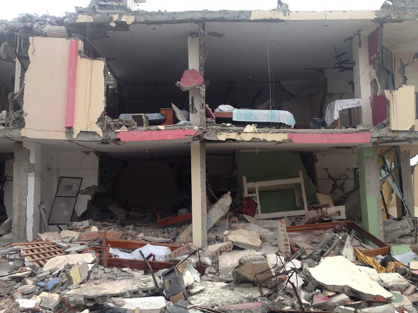 Los edificios del hotel Quito y del hotel Chimborazo –que se levantaban frente a la sede del gobierno Municipal– están destruidos. Son apenas dos de las decenas de establecimientos hoteleros del cantón que colapsaron con el sismo del sábado.