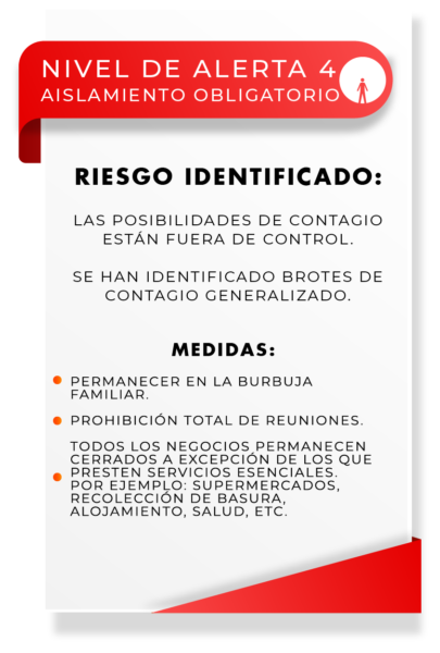 El país del Señor de los Anillos utilizó como estrategia de salud pública un sistema de alertas con categorías que iban del nivel 1 al nivel 4, y cuyas implicaciones se resumen en el cuadro a continuación: