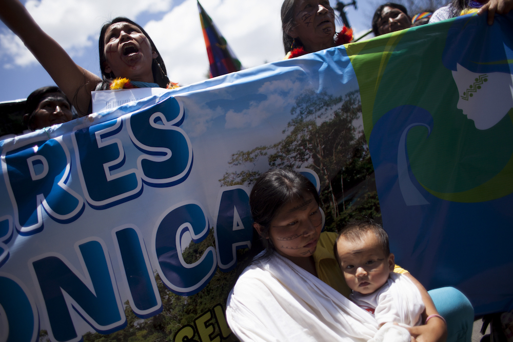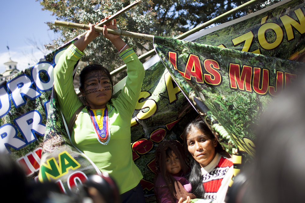 Más de cien mujeres de siete nacionalidades amazónicas del territorio ecuatoriano se juntaron en Puyo –la capital de la provincia amazónica ecuatoriana de Pastaza– para mostrar su indignación frente a las amenazas que penden sobre ellas y sobre sus comunidades: la destrucción de las fuentes de agua, de los bosques y de otros recursos naturales indispensables para sus vidas, y la amenaza permanente a sus costumbres y modos de convivencia, así como la potencial desaparición de sus distintas lenguas.