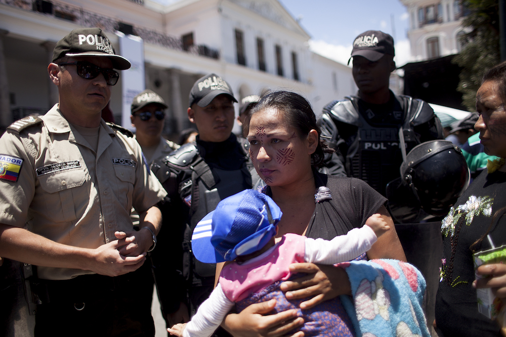 El guion de estos cinco días estuvo marcado por tres momentos: La toma de las calles de Puyo para formar parte de la huelga feminista, el 8 de marzo; la asamblea ciudadana coordinada por las organizaciones Acción Ecológica y la Confederación de Nacionalidades Indígenas Amazónicas del Ecuador (Confeniae), el 9 de marzo, con el propósito de tratar el problema de la división de las comunidades; y la marcha de las mujeres hasta la capital ecuatoriana, que desencadenó una manifestación de protesta frente al palacio presidencial, y en la que la Policía intenta reprimir a las manifestantes. Las mujeres amazónicas cumplieron con lo que quisieron: llegar ante el poder político del estado ecuatoriano y exigir que se detengan las actividades extractivas y la violenta irrupción del capital extranjero en las dinámicas originarias. Pero ahora demandan audiencia con el presidente Lenín Moreno para exigir que sus demandas sean atendidas con urgencia.