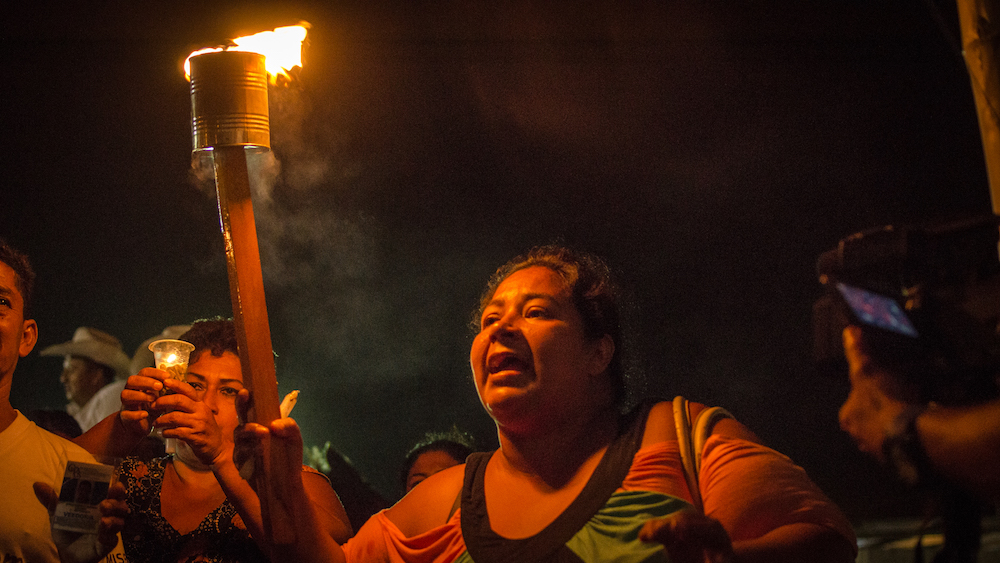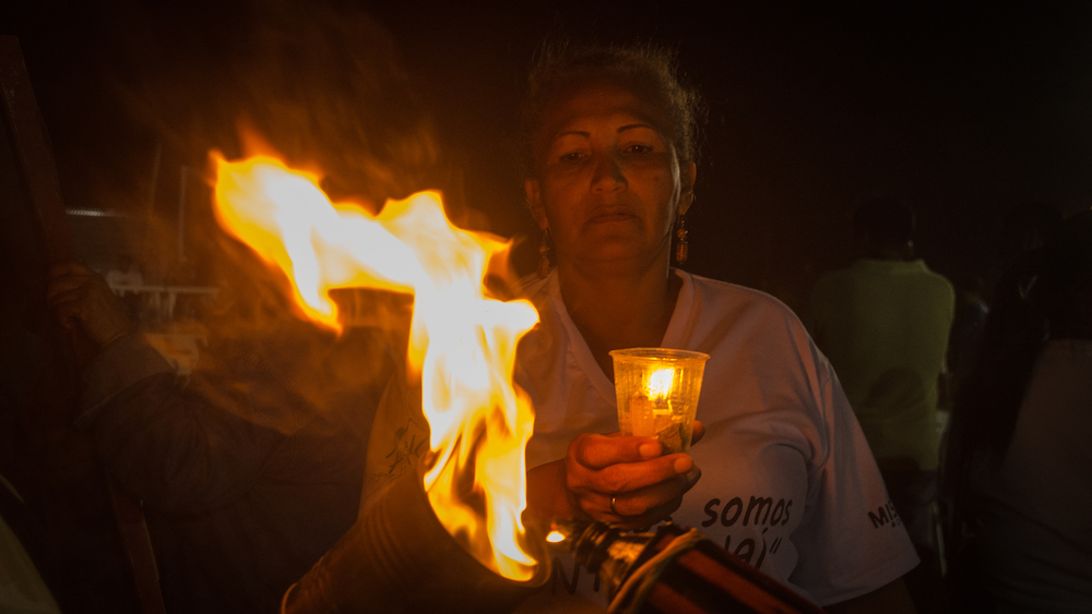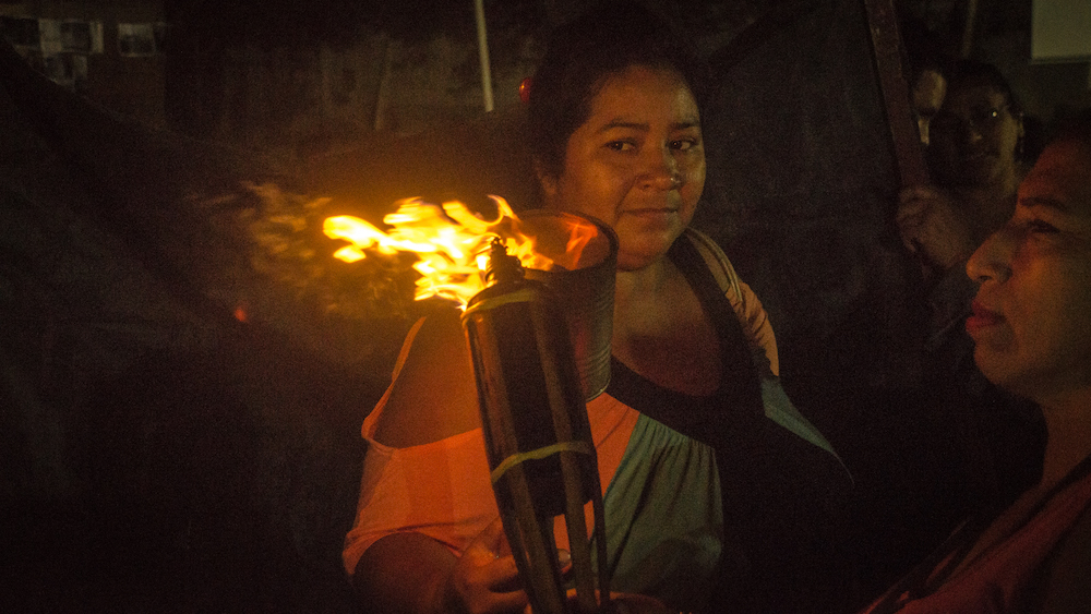 Siomara Jara improvisa una antorcha. Coloca una lata de comestibles vacía sobre un palo. Le enciende las tripas con cerillos. Comparte el fuego con otras mujeres. La noche se vuelve roja. Las caras de las mujeres encienden sus ojos. Sahúman sus cabezas con luz y columnas blancas de humo. Carcajadas como gruñidos festivos salen de sus gargantas. Y levantan ambos brazos redondos como el mundo para gritar: “¡Aquí nos quedamos!”