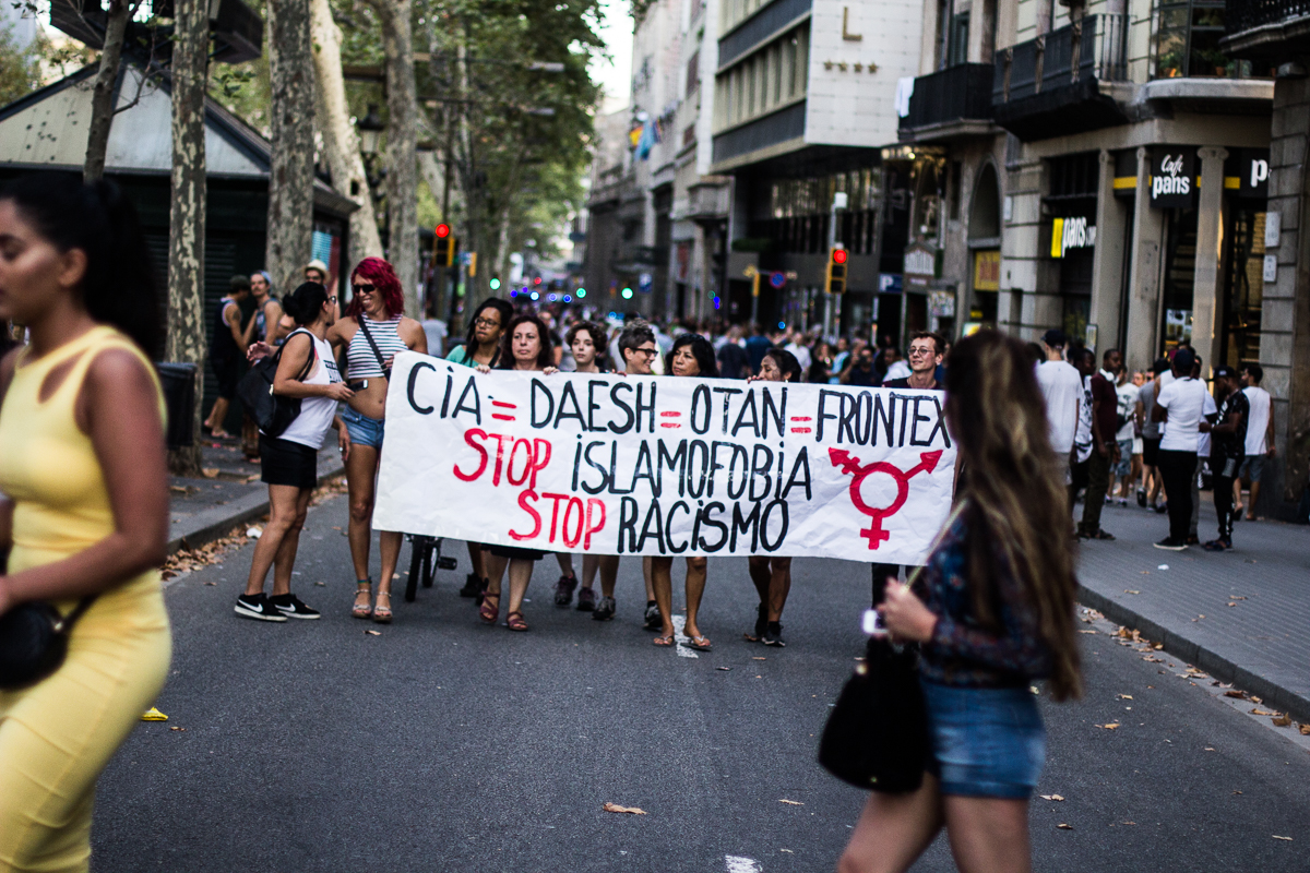 Mientras se anunciaba que Abouyaaqoub fue abatido –cuatro días después–, las reacciones antiislamistas y aquellas que procuran evitar la vinculación de un hecho terrorista con profesiones religiosas se tomaban algunas calles. Pero el sentimiento de unión frente la violencia gana terreno: juntas se han oído consignas como «No tinc por! No tinc por!» (No tengo miedo), “no pasara y els carrers serán sempre nostres»; el sábado, también se acercó una nutrida comitiva conformada por taxistas provenientes, en su mayoría, de países musulmanes, para rendir homenaje a los trece caídos durante el ataque y a las dos víctimas que murieron durante la huida de Abouyaaqoub. En París, sus autoridades dispusieron apagar las luces de la torre Eiffel como tributo a los que perdieron la vida en Barcelona.