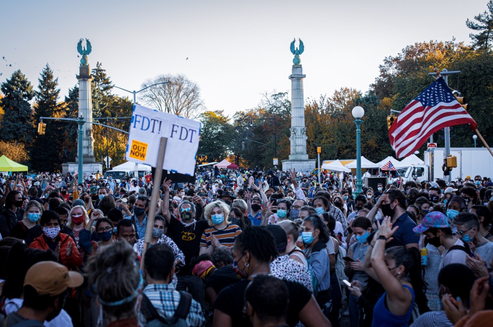 Pero esto no se podía comparar con el verano. Nunca el parque estuvo tan lleno. Miles de personas se tomaron este espacio para sentarse con sus familias, encontrarse con amigos o bailar con extraños. En el centro, varias personas saltaban con los brazos arriba al son de una tonada que salía por un parlante. Muchos eran jóvenes en sus treintas, bailando hits pop que estuvieron de moda hace 10 años. El salto era colectivo, a un costado bailaba una niña con su mamá quien la abrazaba fuertemente. Cada cinco minutos el parque explotaba en una ola de euforia sonora. De pronto, el grupo explotó con el grito de “Black Lives Matter!”, y el baile continuó al celebrar la victoria de un presidente que no está en contra de la comunidad negra ni latina.