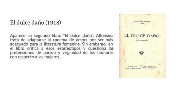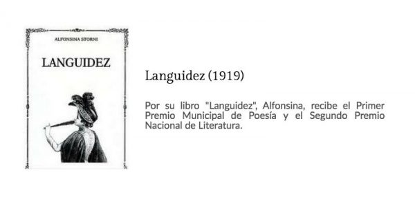 Alfonsina nació en Suiza pero vivió en Argentina. Alfonsina Storni fue escritora, poeta, actriz y maestra. Es considerada uno de los íconos de la literatura postmodernista. Los temas de su trabajo son la lucha, el amor y la reivindicación de la mujer. Fue amiga del escritor uruguayo Horacio Quiroga y de la poeta chilena Gabriela Mistral.
