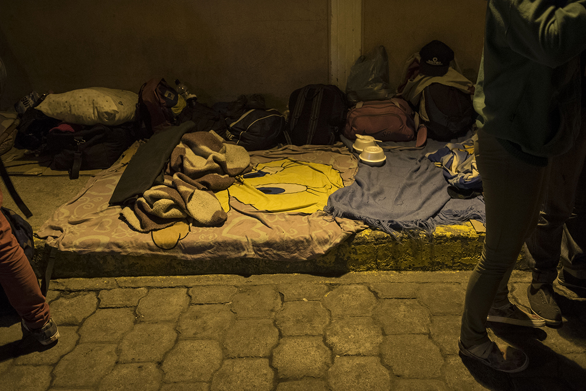 Historias como estas cuentan quienes pasaban la noche en Carcelén y quienes luego se han instalado en los refugios temporales. Ahora hay familias enteras en las bancas o en el suelo. Esperan algo. Piden ayuda a los transeúntes para seguir su viaje. Intentan dormir. Venden su cabello.