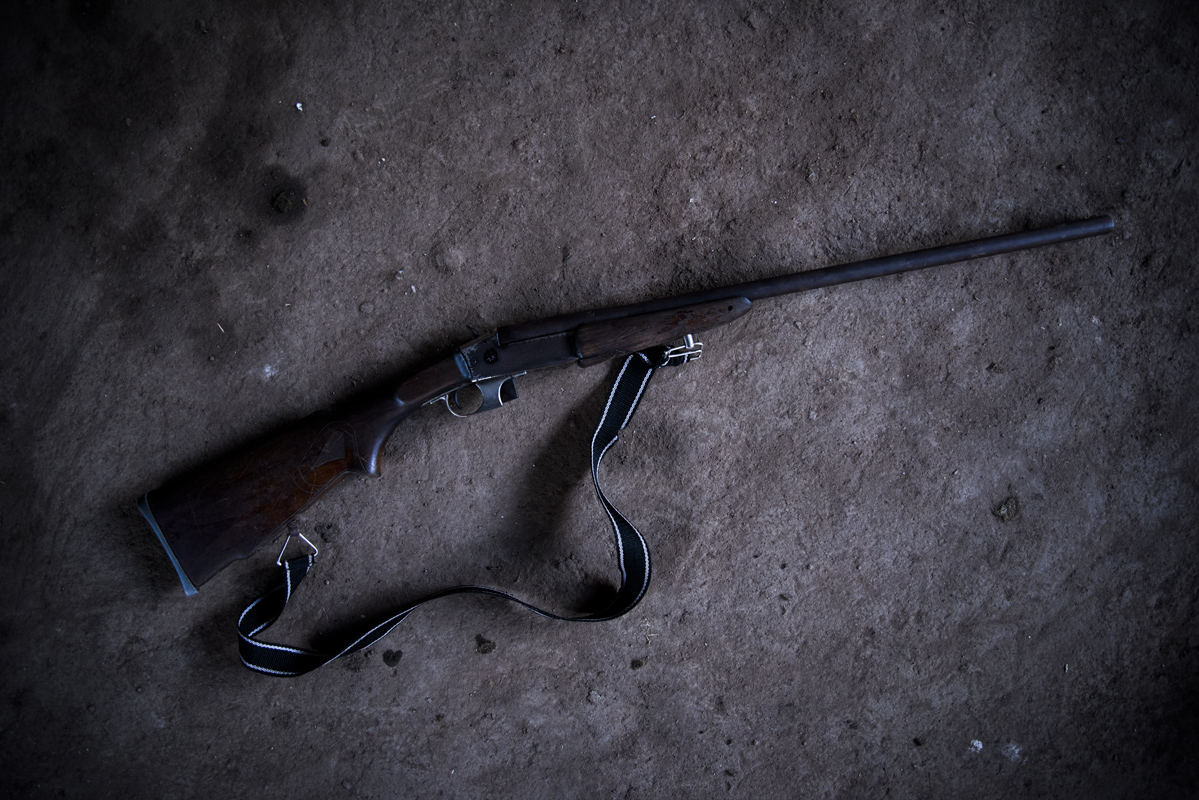 Catherine Pérez no es capaz de empuñar un arma, sin embargo, este rifle de caza adorna una esquina de su hogar. Solo lo usaría para ahuyentar a los animales que intenten dañar su cultivo de plátano con el que espera sacar a sus hijos adelante.