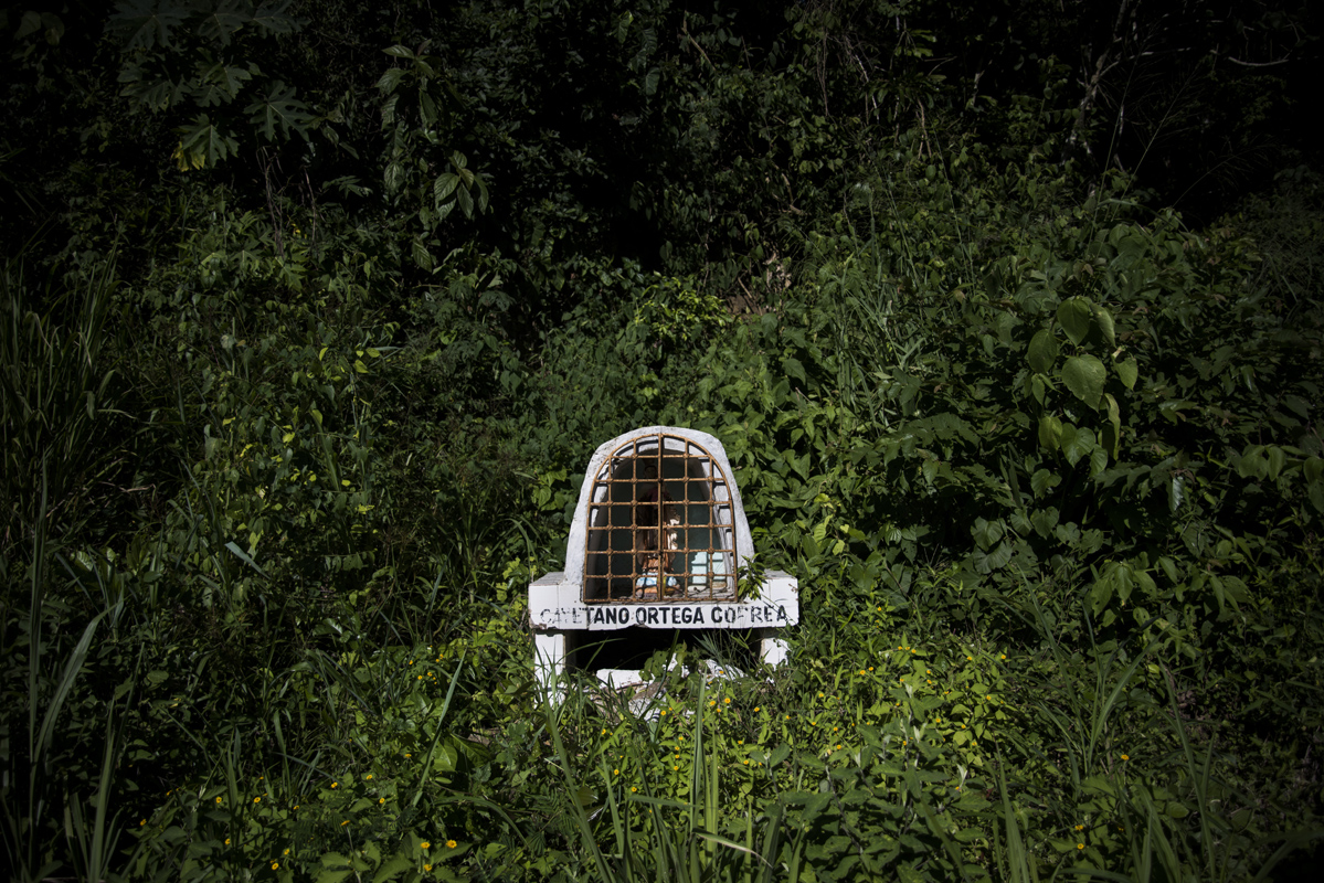 Altar en homenaje a Cayetano Ortega, en la vía a La Sierra en los montes de María, donde fue arrojado hacia el barranco en su carro por la guerrilla de las FARC.