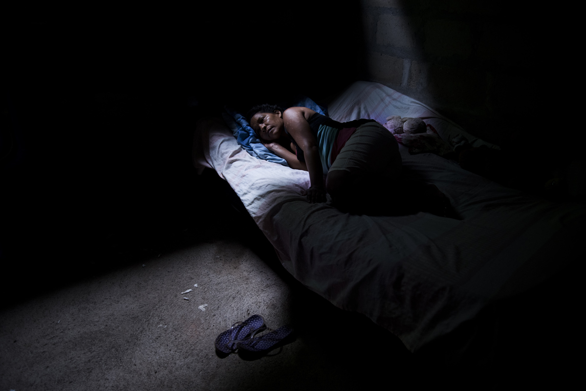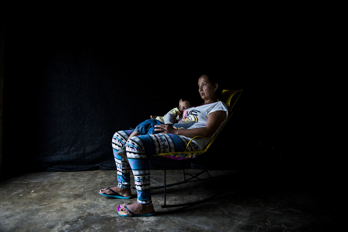 Gloria Areiza vive en Sacramento, Magdalena. En 2001, cuando tenía 3 meses de embarazo y una niña de 6 meses de edad, su esposo fue asesinado, su casa fue quemada y le tocó huir. Aún vive con miedo, en una casa mitad cemento mitad tabla.