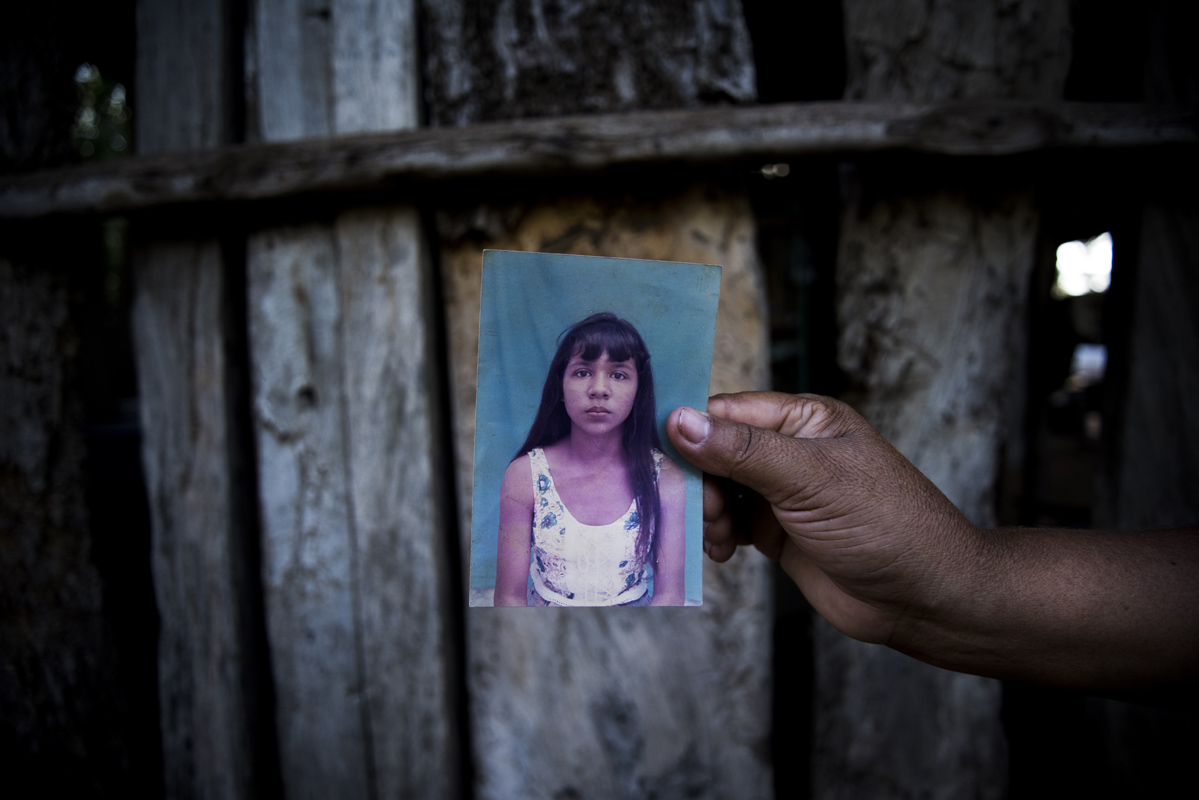 Catherine Pérez, de 43 años, sostiene en su mano la fotografía de su hermana desaparecida, Iris Esther Pérez, quien antes de cumplir 15 años fue reclutada por la guerrilla, el 12 de mayo de 1996. Iris es una más de los 3.000 niños reclutados en los últimos 20 años en Colombia por las FARC-EP.