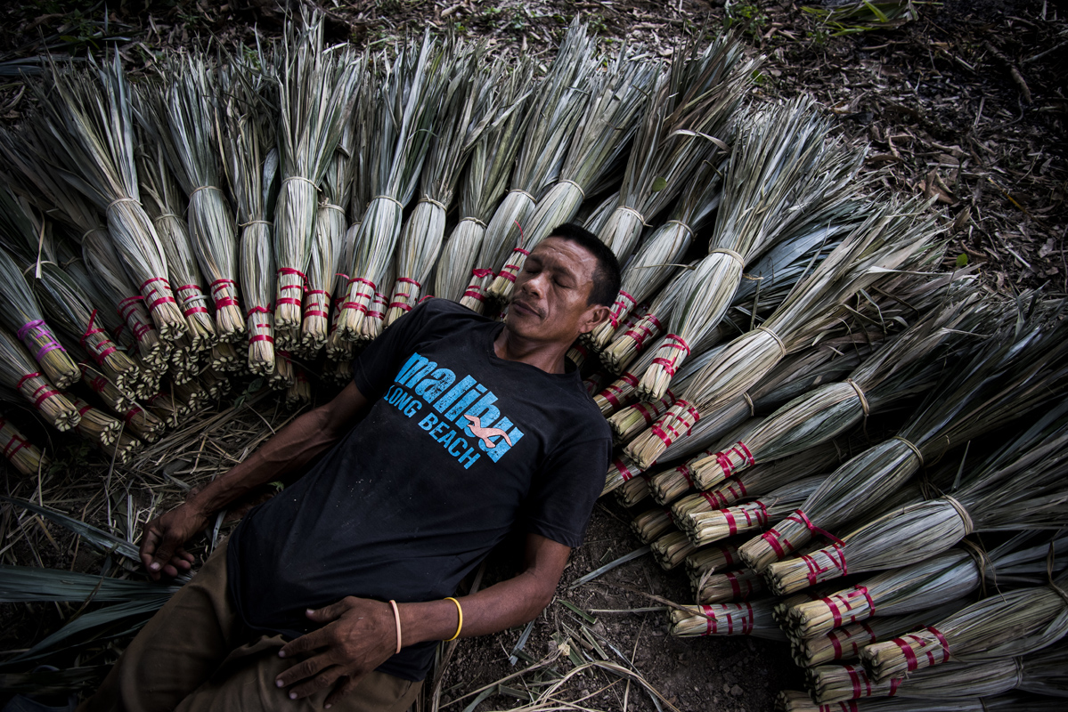 Pacho Gonzales, 34 años, salió desplazado de la vereda El Bolsillo (Montes de María), en junio de 1999, regresó en 2008, luego del cese de combates. Hoy acostado sobre las escobas que fabrica en la vereda La Sierra, en pleno corazón de El Carmen de Bolívar, recuerda las noches en las que intentó dormir. El sueño se lo robaron el frío y los mosquitos en cañadas y matorrales, únicos refugios posibles para esquivar las balas que lanzaban unos y otros.