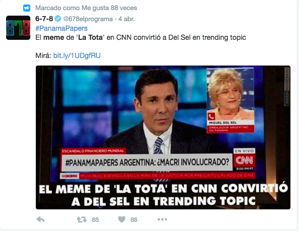 En su defensa también salió la canciller –de quien trascendió, en ocasión de la visita de Barack Obama a Argentina, que podría ser la nueva secretaria general de la ONU–. La ministra de Relaciones Exteriores y Culto, Susana Malcorra, aseguró durante una conferencia en la que estuvo acompañada por su par español, José Manuel García Margallo, que «es una cuestión del presidente en un período anterior y en su rol privado». También confirmó que «la Cancillería no le ha dado ninguna instrucción al embajador» argentino en Panamá, Miguel del Sel –un actor cómico cuya foto vestido de mujer apareció en un meme en redes sociales como si lo hubiera usado en un informe la cadena CNN.