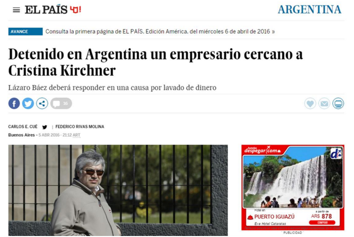 En medio del escándalo mundial, fue apresado el empresario Lázaro Báez, señalado como el testaferro de la expresidente Cristina Fernández de Kirchner. Los fundamentos pueden leerse aquí.