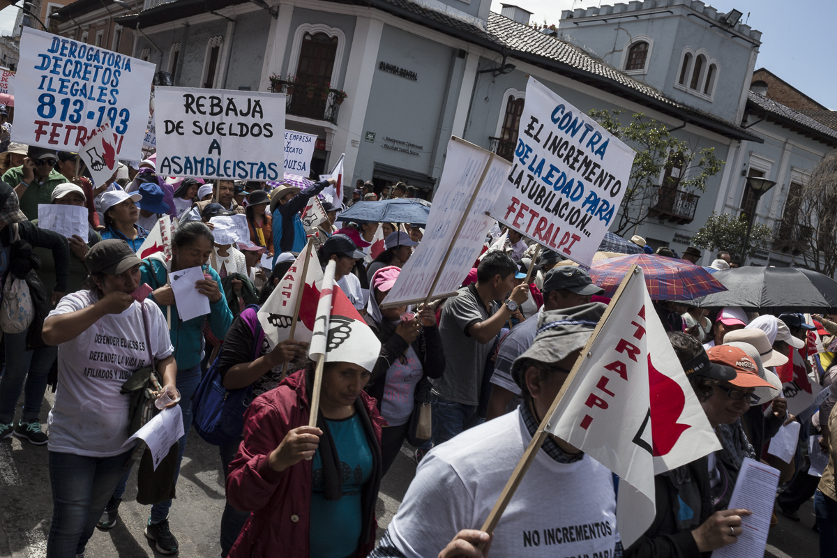 Sin embargo, y como si algo empezara a desatarse después de un duradero cautiverio, hubo funcionarios que reclamaron por el aumento de sus salarios y demandaron la reducción de los sueldos de los asambleístas, que en Ecuador equivalen a 5 009 dólares, sin contar con bonos y pasajes aéreos para quienes no viven en Quito. El inicio del gobierno de Lenín Moreno dio ciertas luces de que se podría restablecer un clima de diálogo entre las autoridades y el sector laboral. Pero los hechos no son muy claros: la reducción de personal sin planes concretos que permitan la reubicación de los trabajadores, la falta de estabilidad laboral y los engorrosos procesos de contratación fueron causas de las protestas ciudadanas. La temperatura mostró, más bien, un intento de reconocer un terreno nuevo.