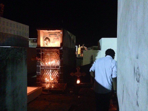 Los tres venados avanzaban entre los niños que jugaban trepando sobre las tumbas, entre las familias que recogían los restos de la comilona que habían compartido esa tarde con sus muertos.