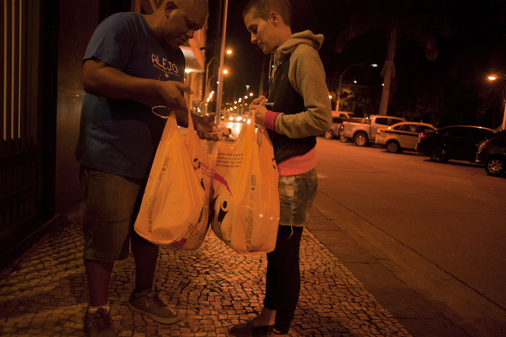 Cuando no tienen entregas a domicilio, uno de los puntos de venta es la estación de Madureira y la Feria de Abolição. Los sábados, mientras Armando cuida a Natasha, Josmirt se abre paso entre las escalinatas próximas del tren y avanza, con el cabello hasta el hombro, atesorando una canasta de plástico bajo el brazo y un promedio de 8 paquetes de rolls para vender.
